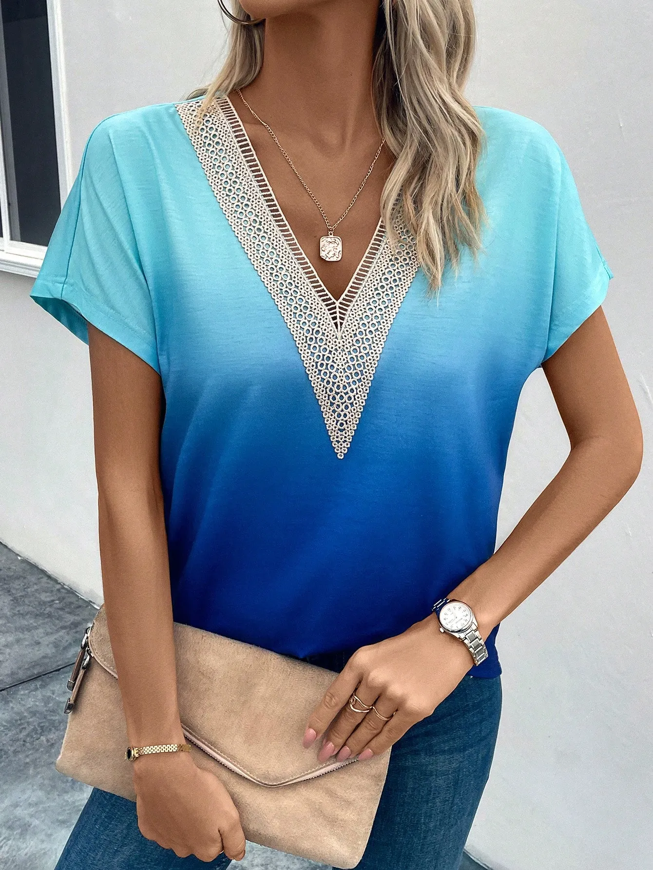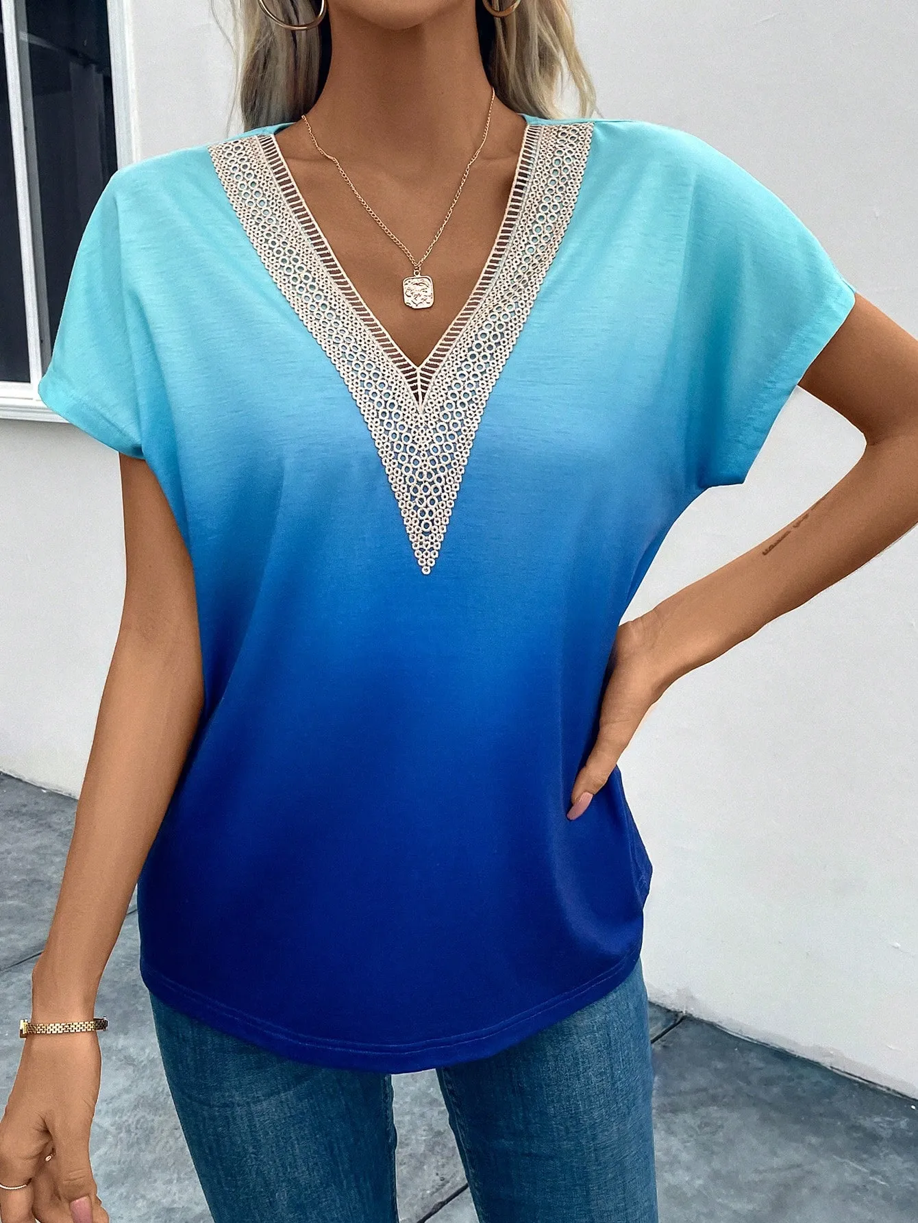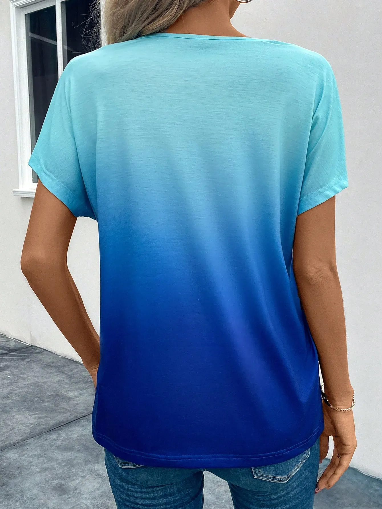 SMY Gorgeous Gradient Trend Small V-Neck T-Shirt