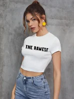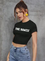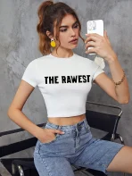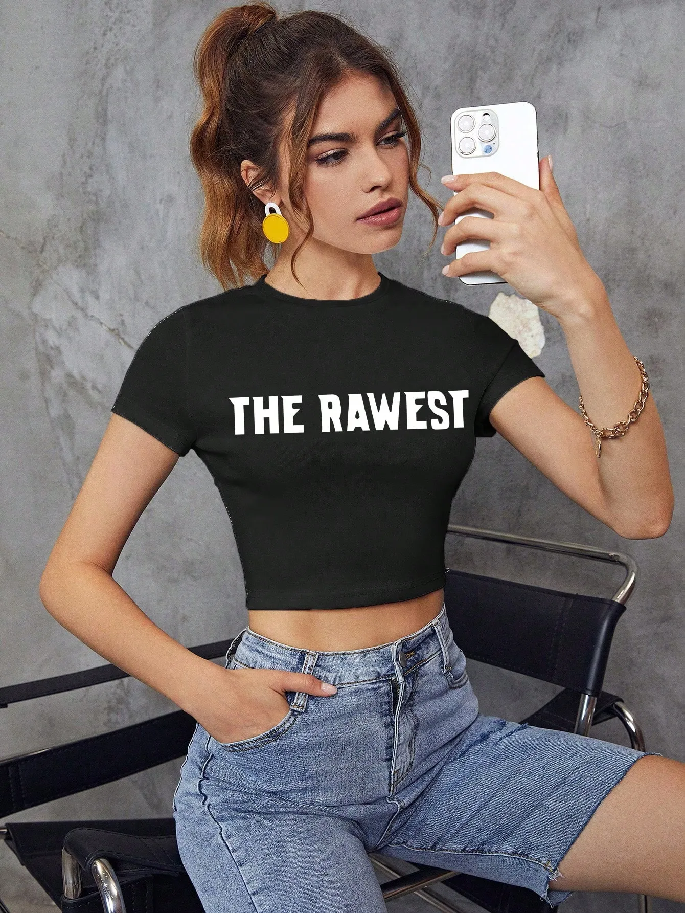 SMY Gorgeous Letter Printed THE RAWEST Small Round Neck T-Shirt