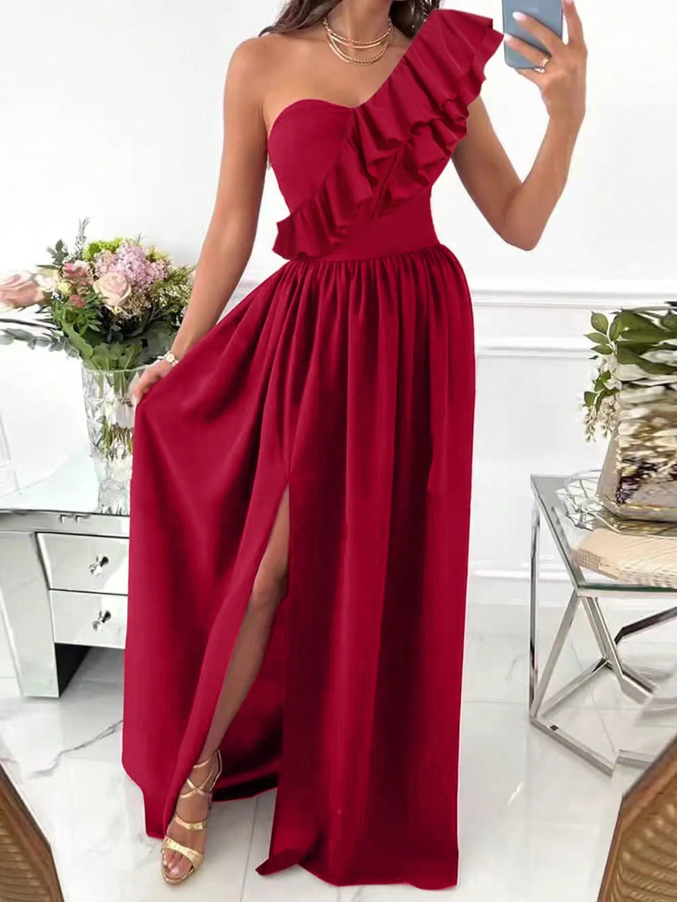 SMY Gorgeous Off Shoulder Collar Women’s Elegant Off Shoulder Slit Dress
