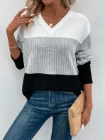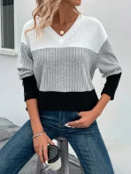 Tags: 2025 S/F, Casual Style, Color Block, Daily Essentials, Elegant Fashion, Long Sleeve Tops, S/F, Tops, Work Outfits