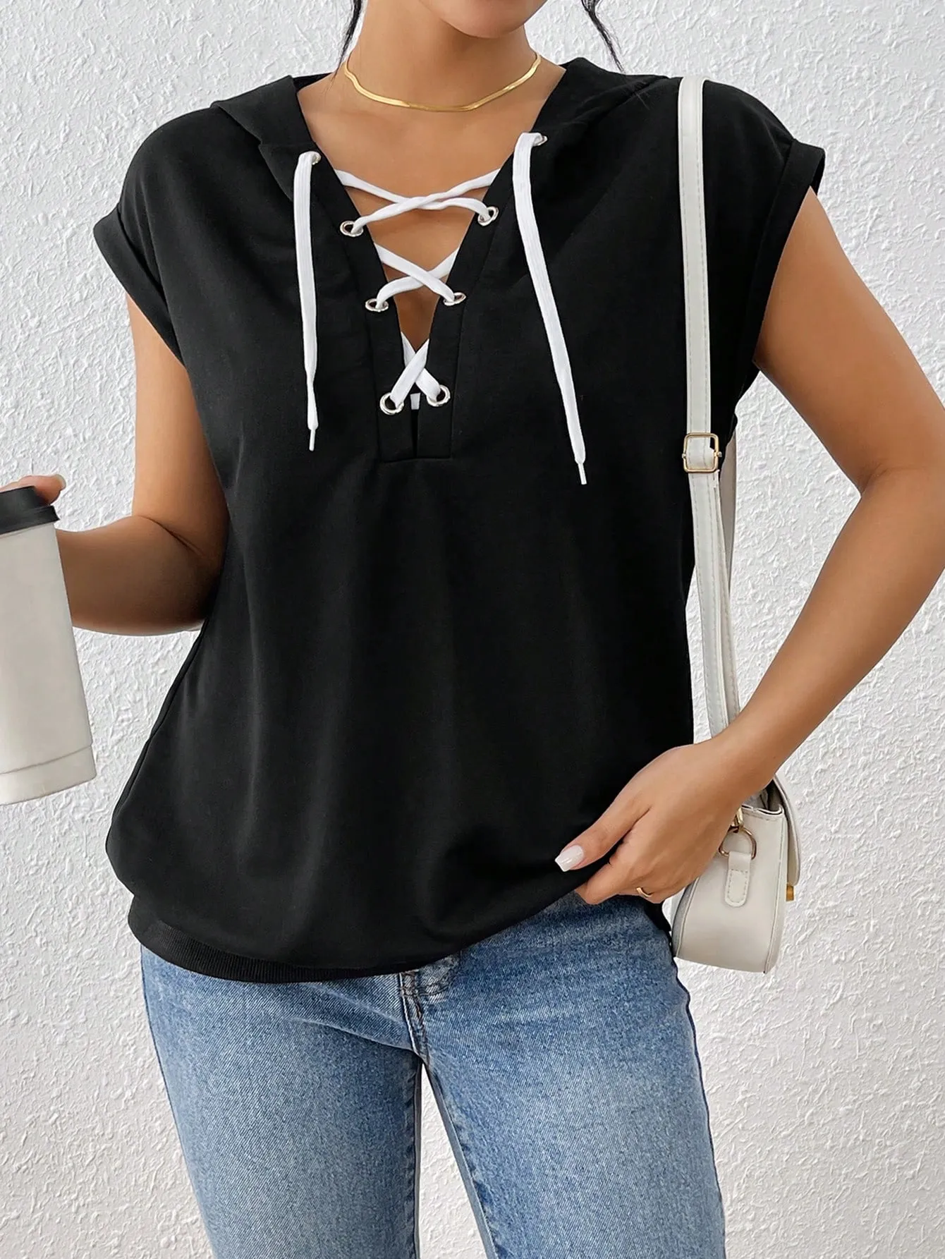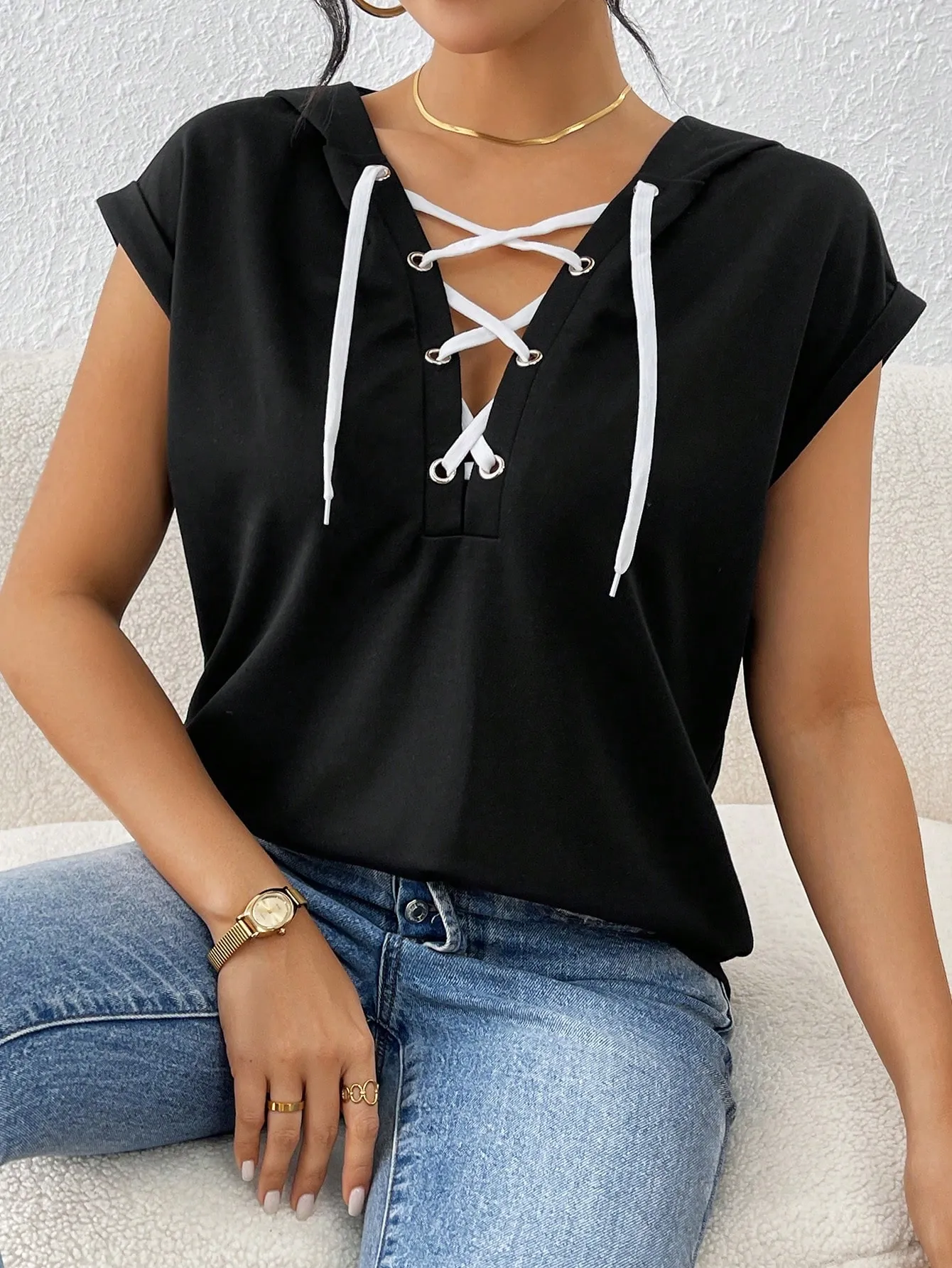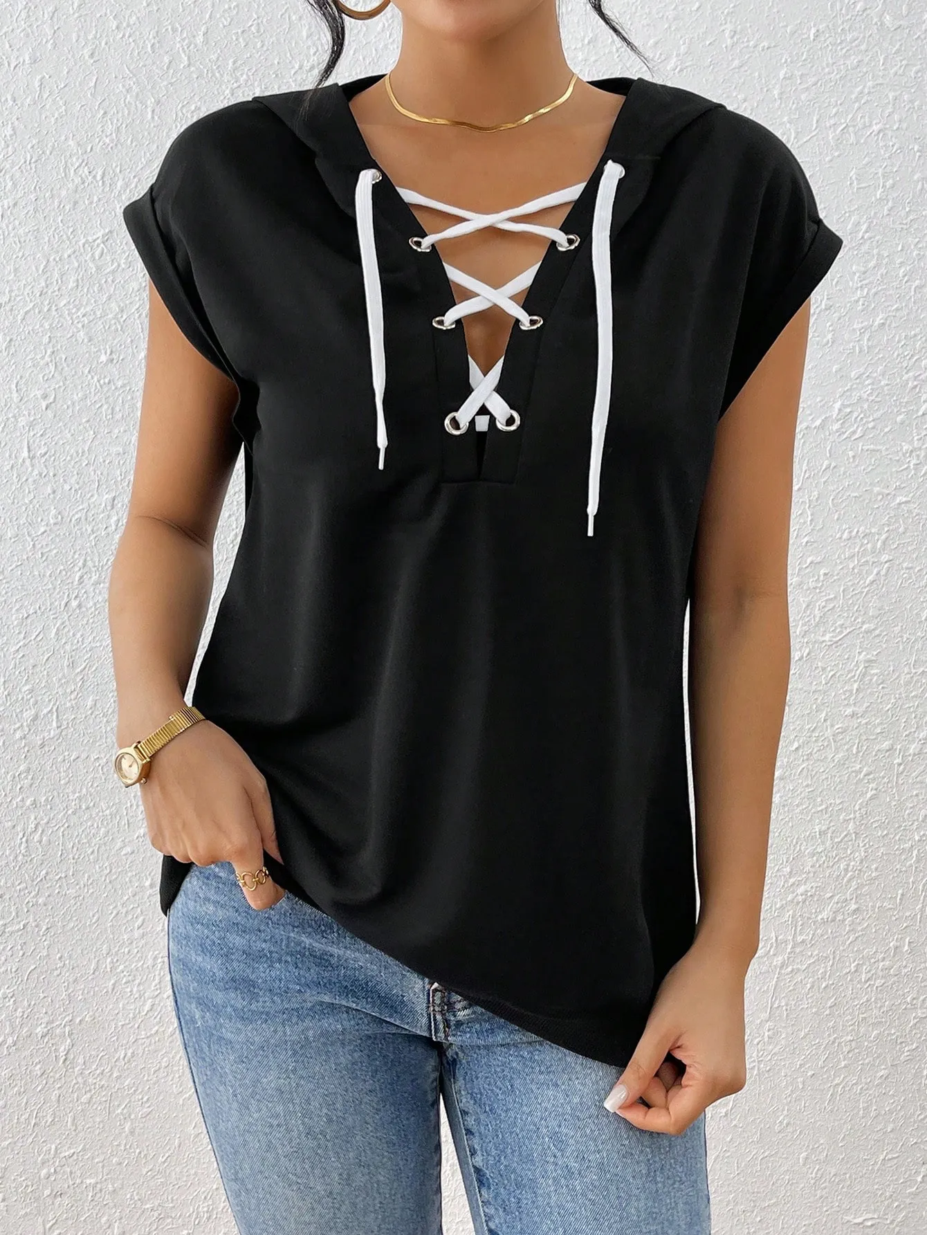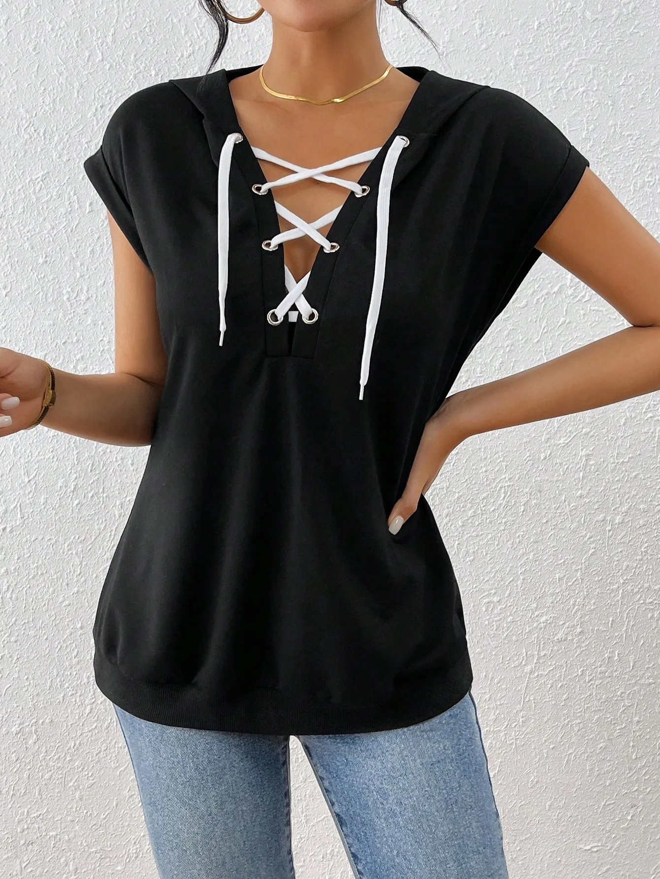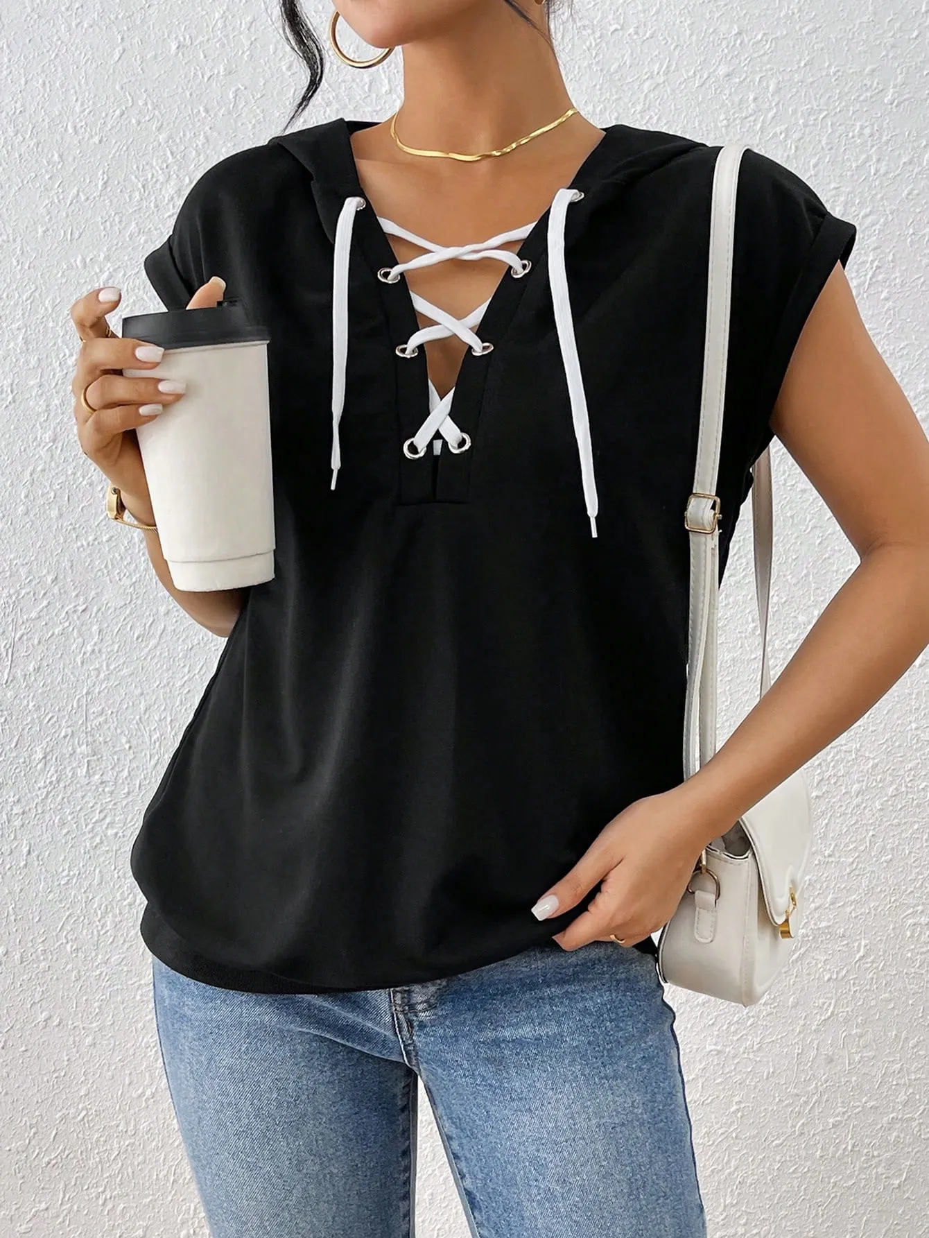 SMY Gorgeous Trend Hooded Short Sleeved Sweatshirt