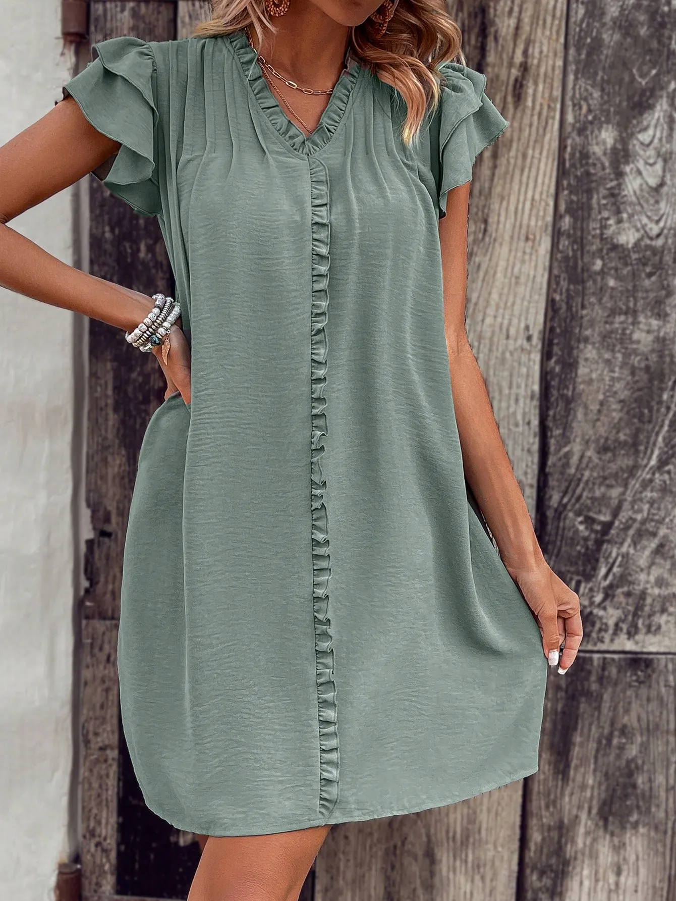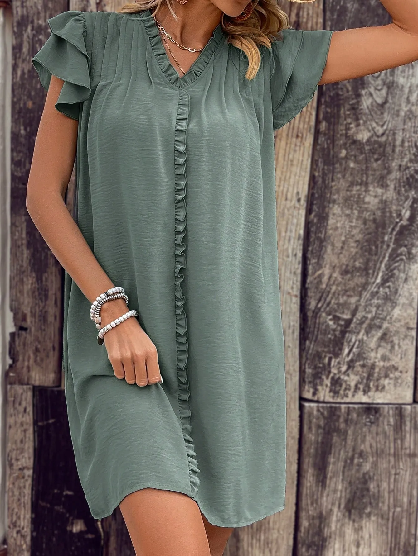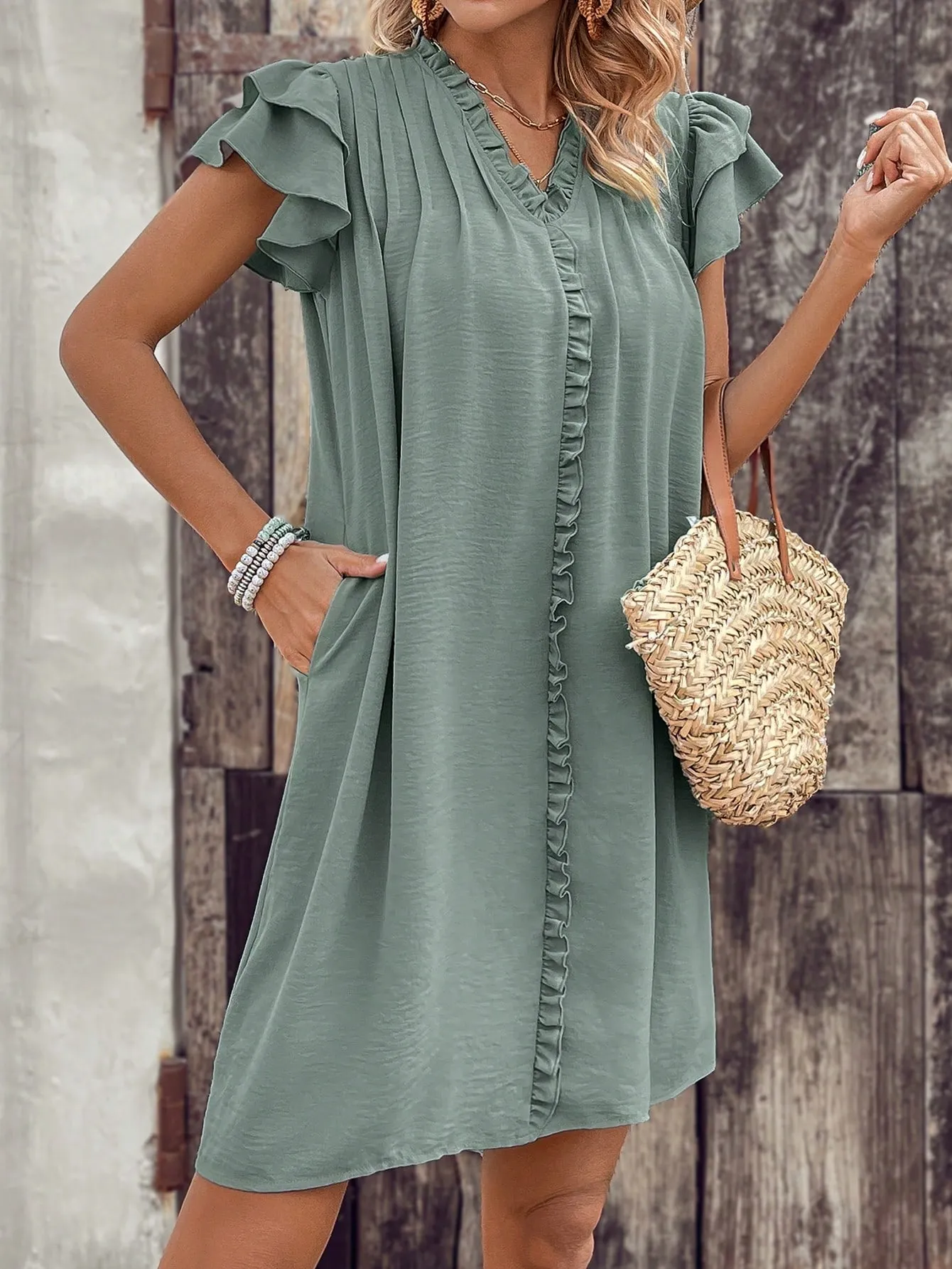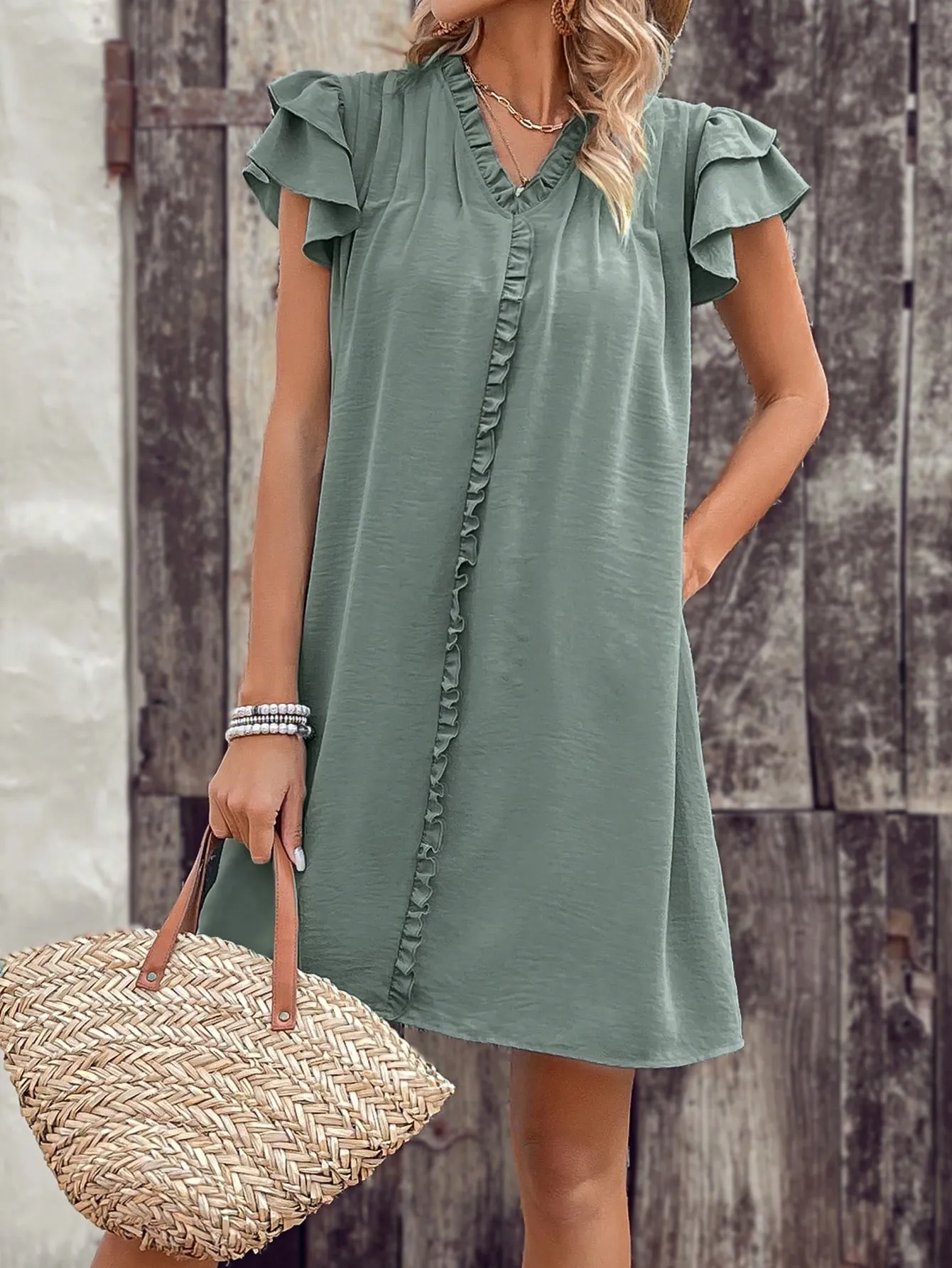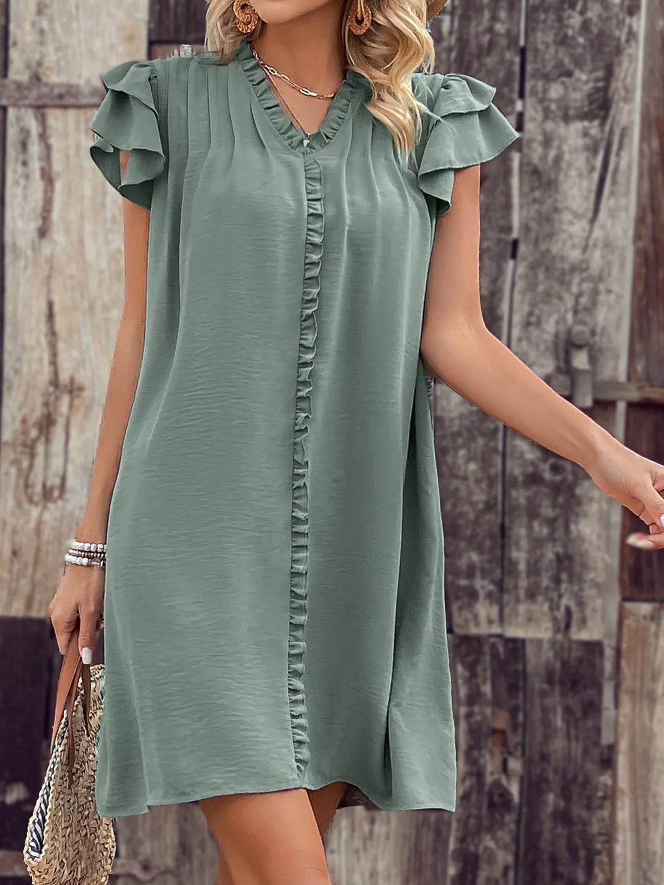 Tags: 2025 S/S, Blank Apparel, Casual Style, Daily Essentials, Dress, Elegant Fashion, Night Out, Party, Ruffle Sleeves, S/S, Work Outfits