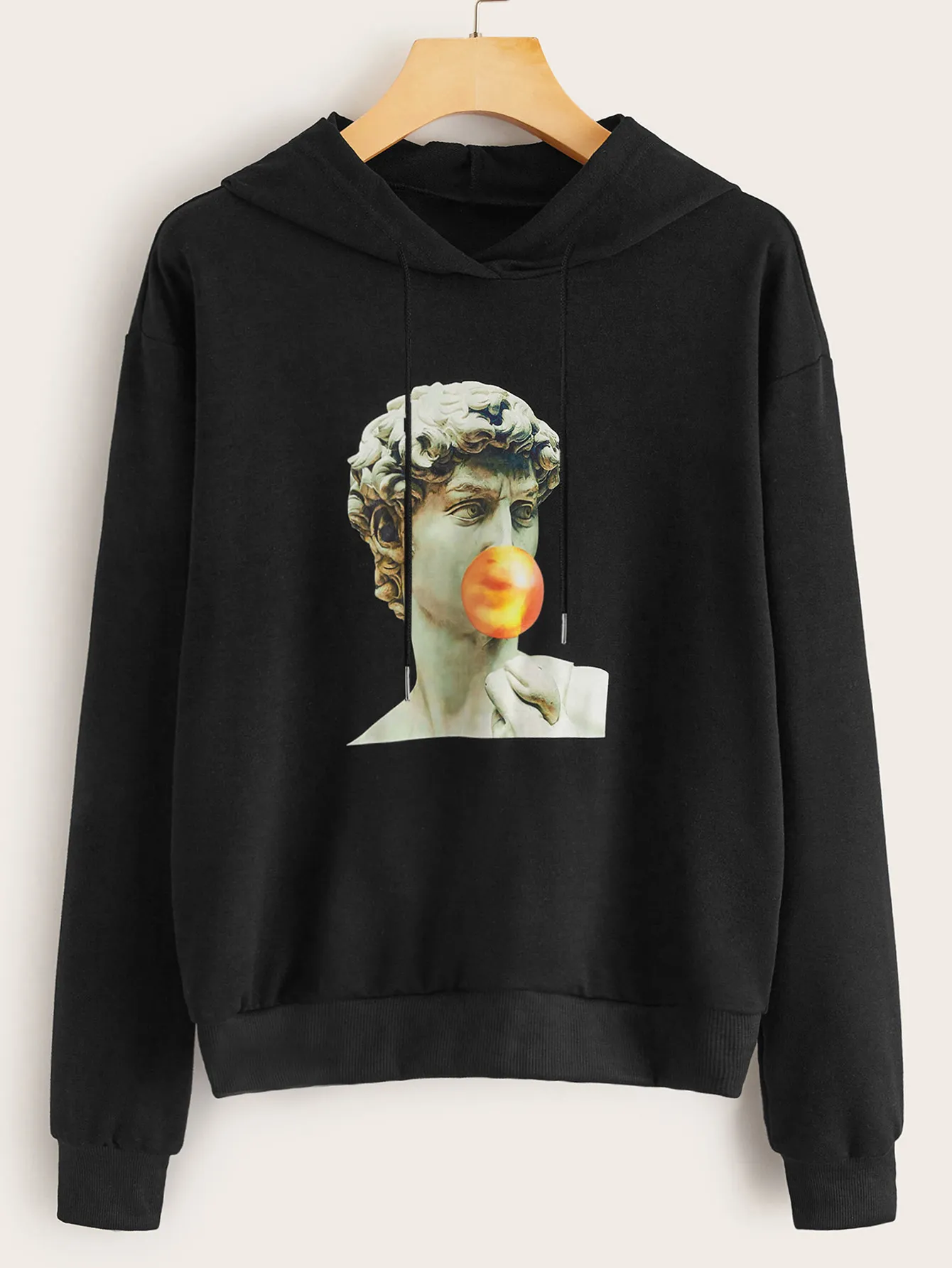SMY Hooded Regular Printed Blowing Bubble Patterns Hoodie