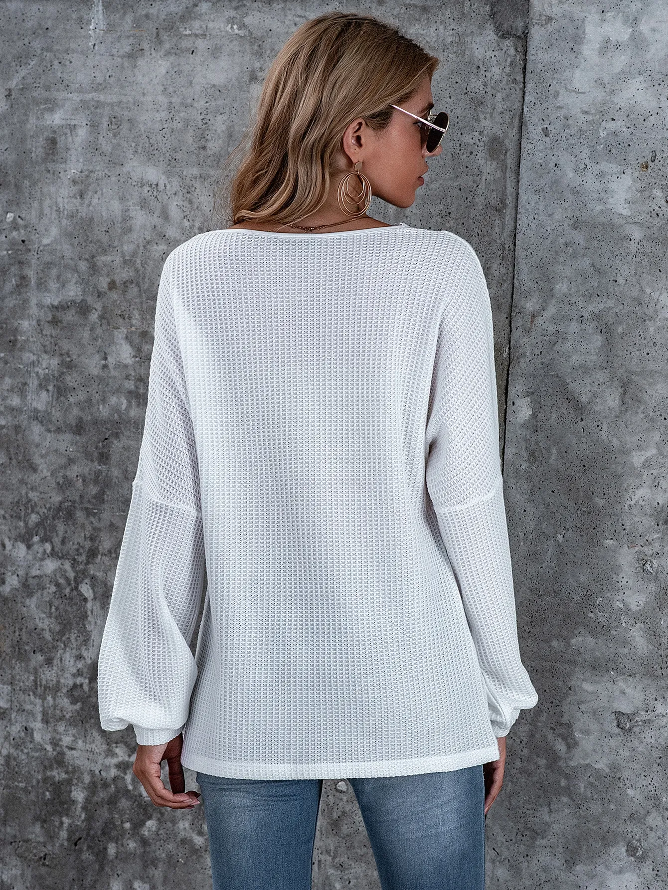 SMY Women’s Solid Color Crossover V-Neck Long Sleeve Pleated Casual T-Shirt