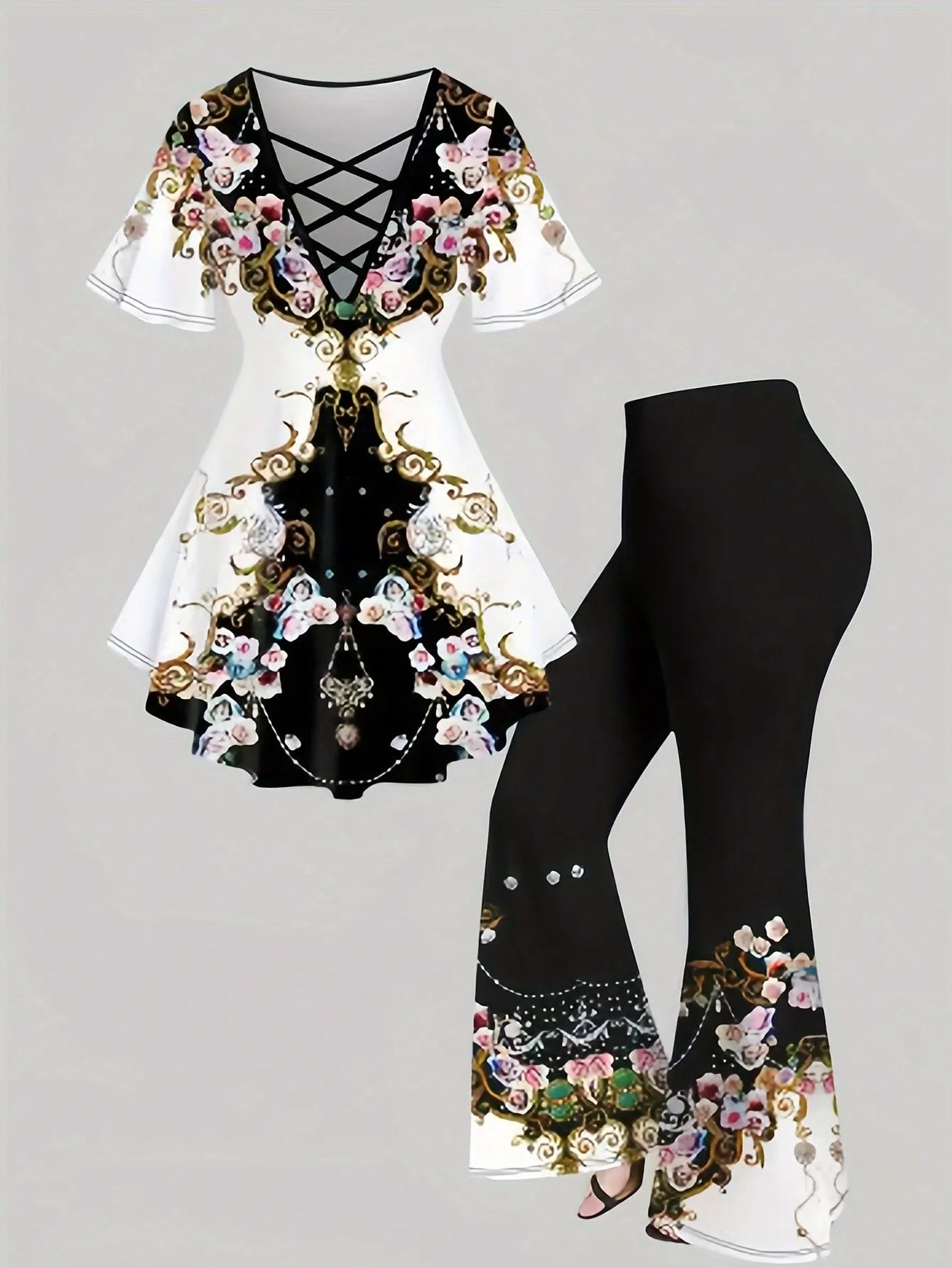 SMY Leisure Deep V-Neck Women’s Special Printed Two-Piece Set