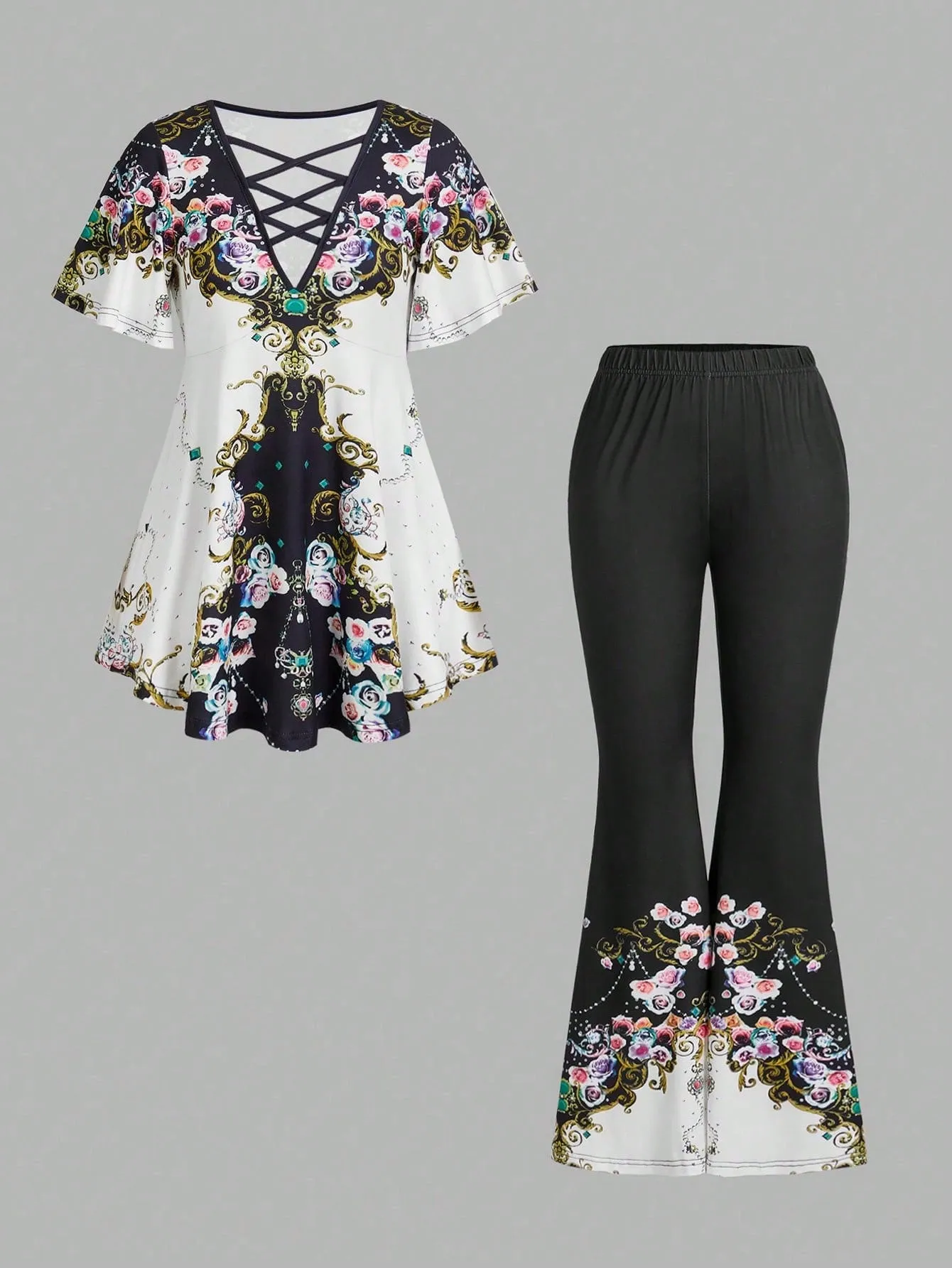 Be the first to review “SMY Leisure Deep V-Neck Women’s Special Printed Two-Piece Set” Cancel reply