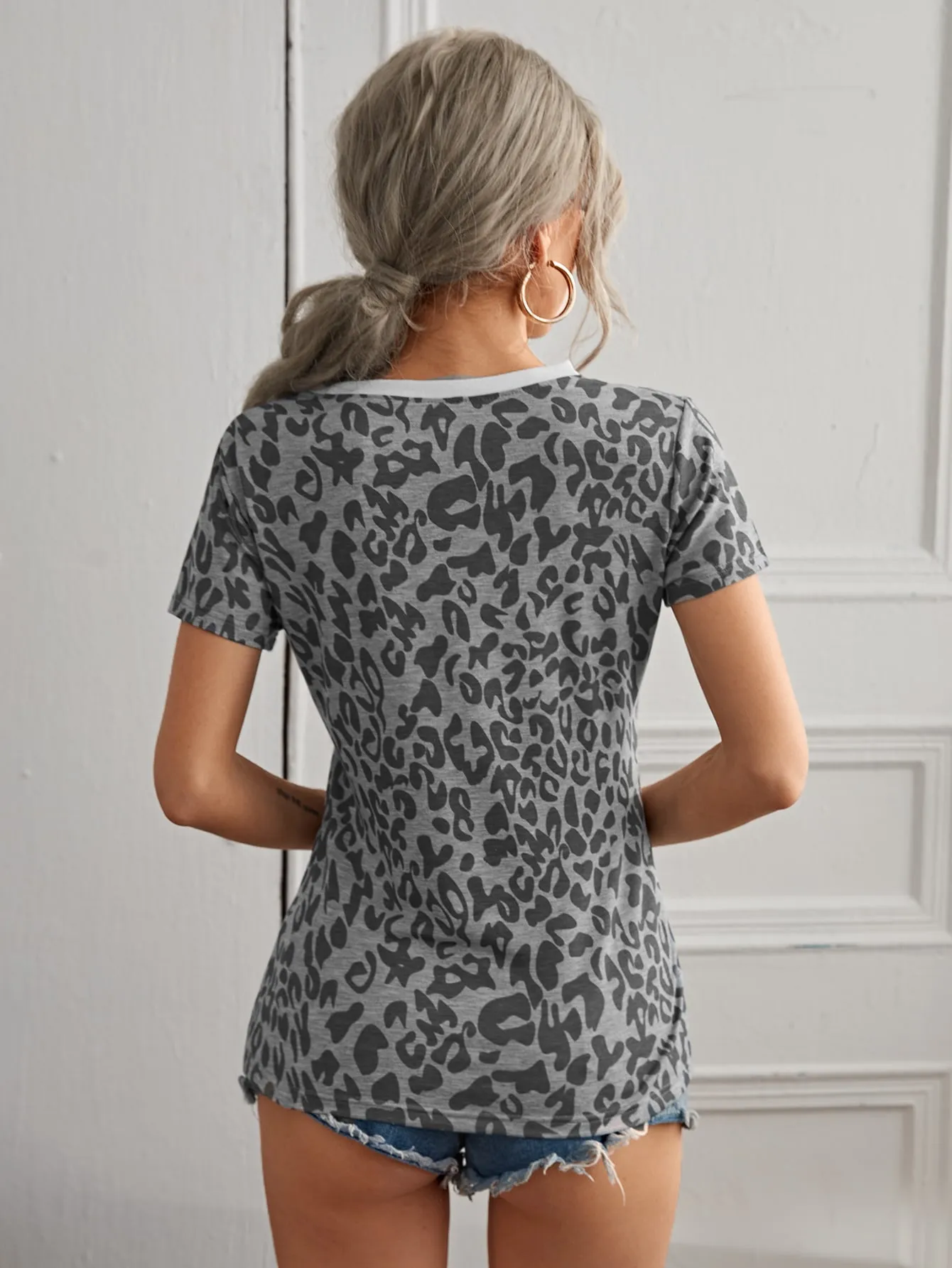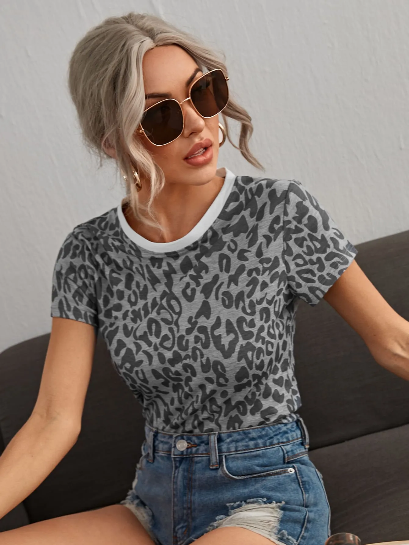 SMY Leopard Small Round Neck Simple Pattern Printed T-Shirt