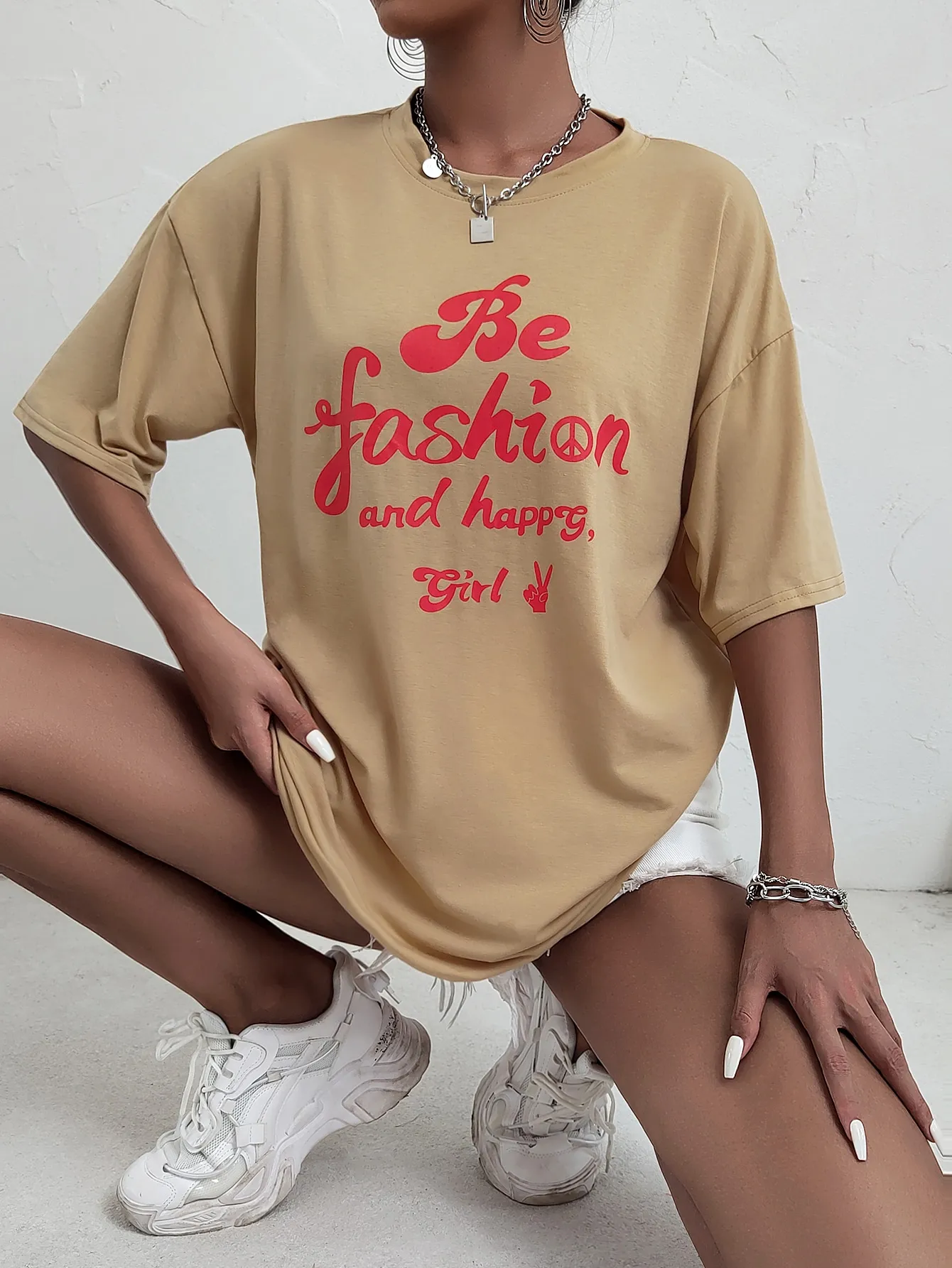Be the first to review “SMY Letter Printed BE FASHION AND HAPPY GIRL Casual Round Neck T-Shirt” Cancel reply