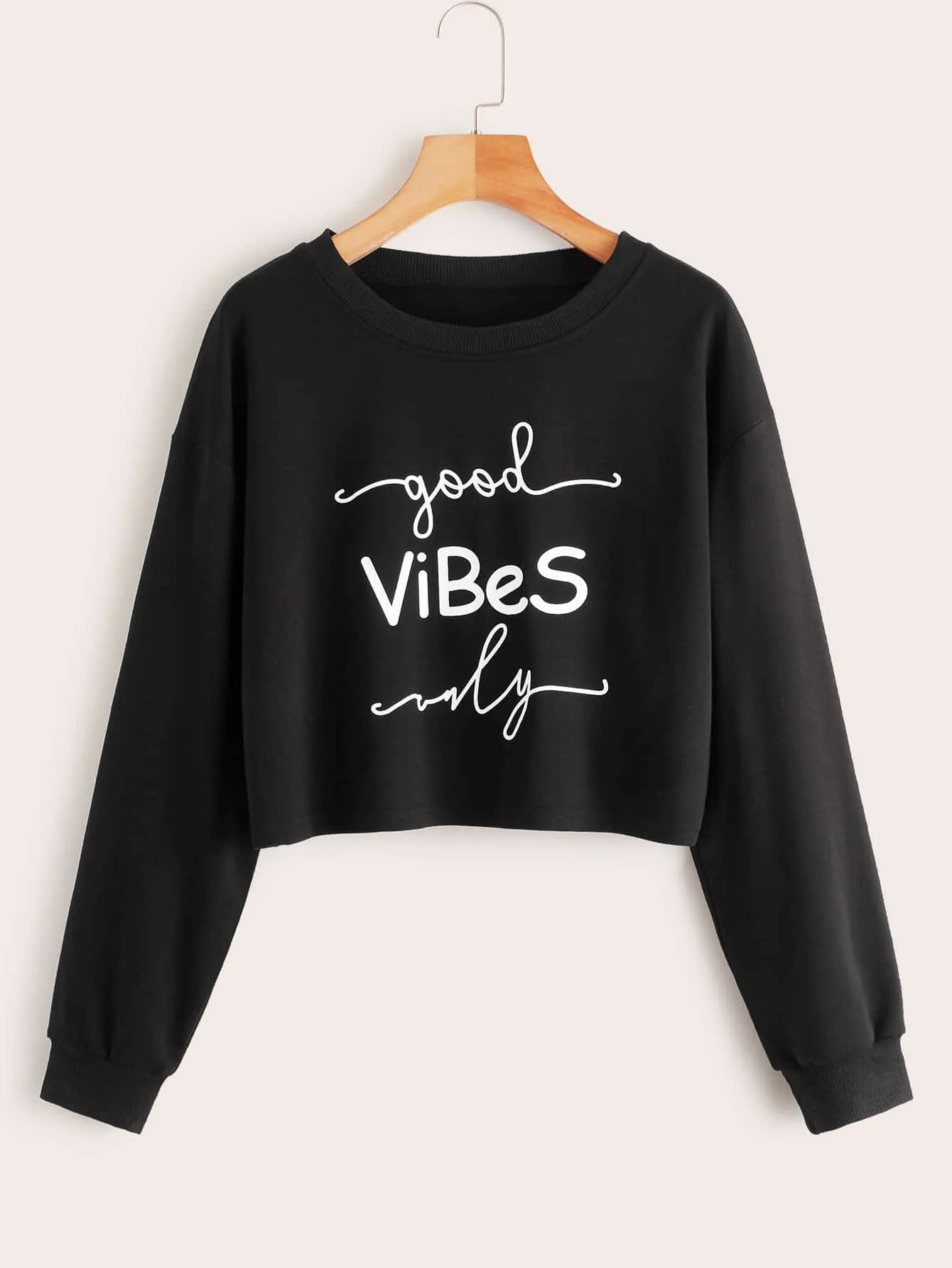 SMY Letter Printed Good Vibes Only Small Round Neck Short Hoodie