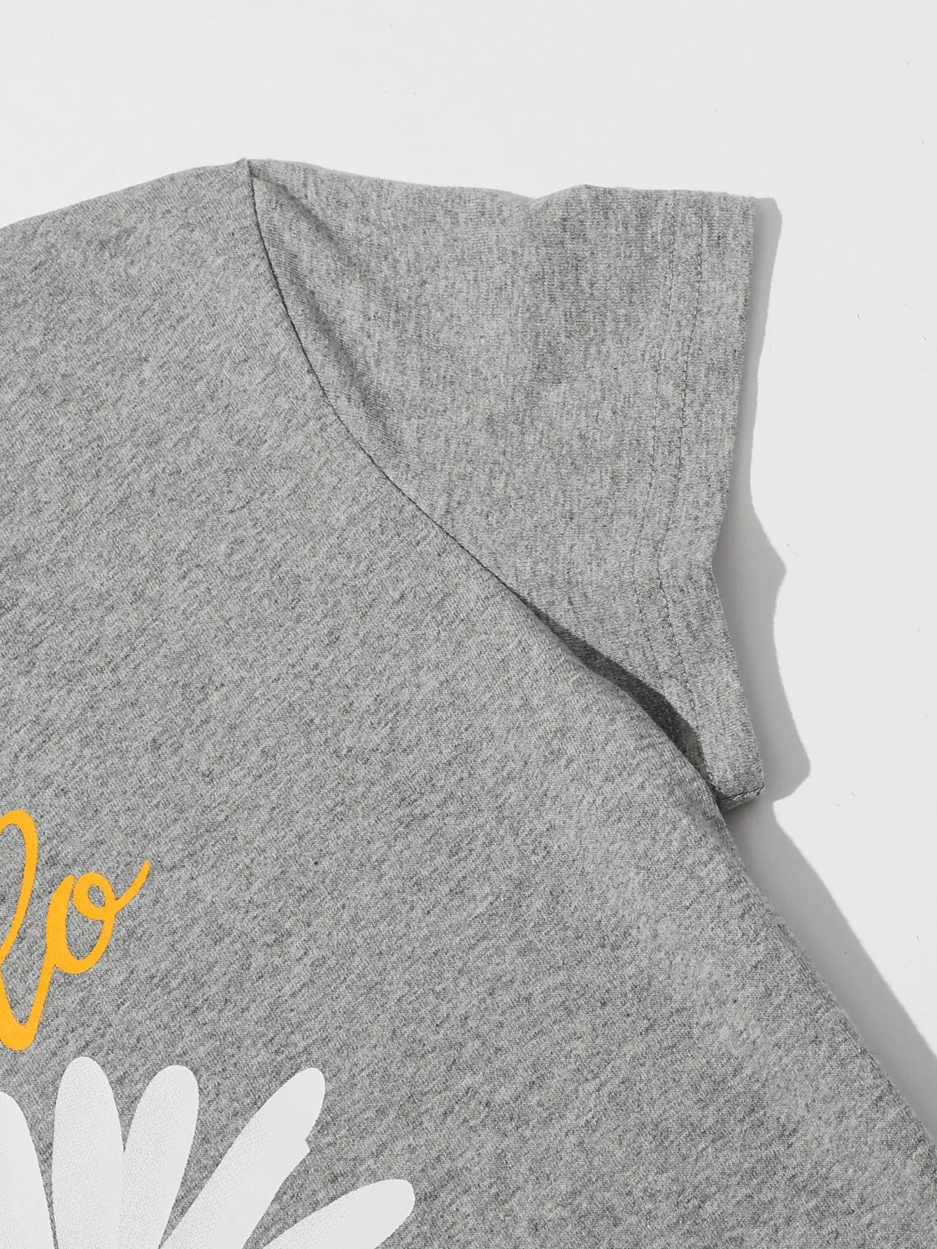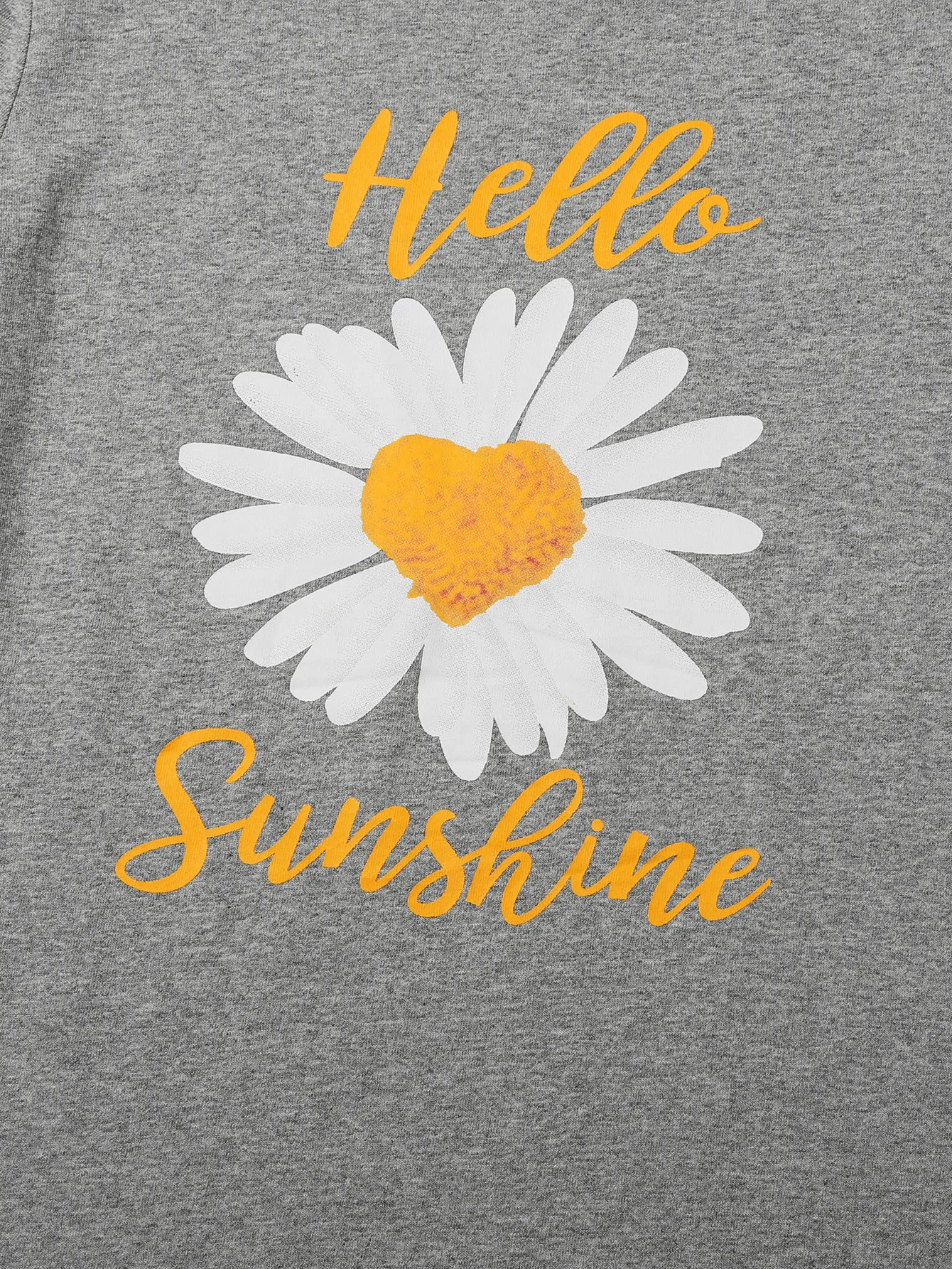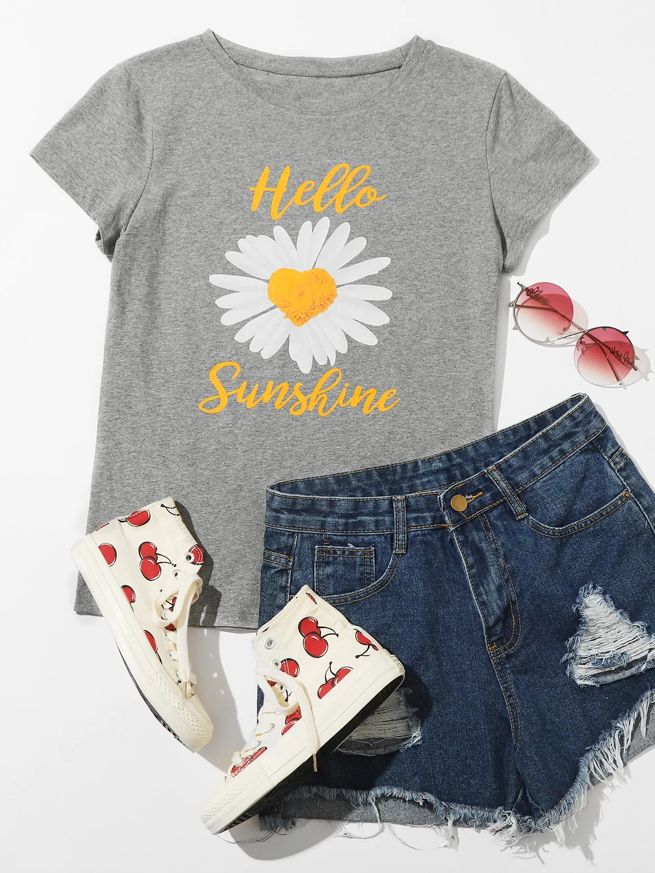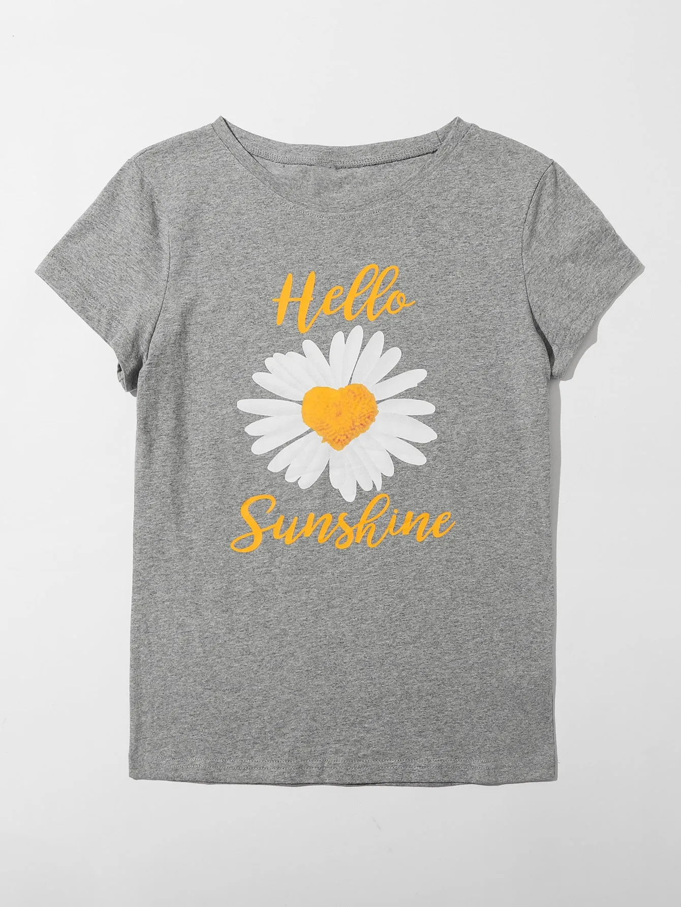 SMY Letter Printed HELLO SUNSHINE Small Round Neck Simple Pattern Printed T-Shirt