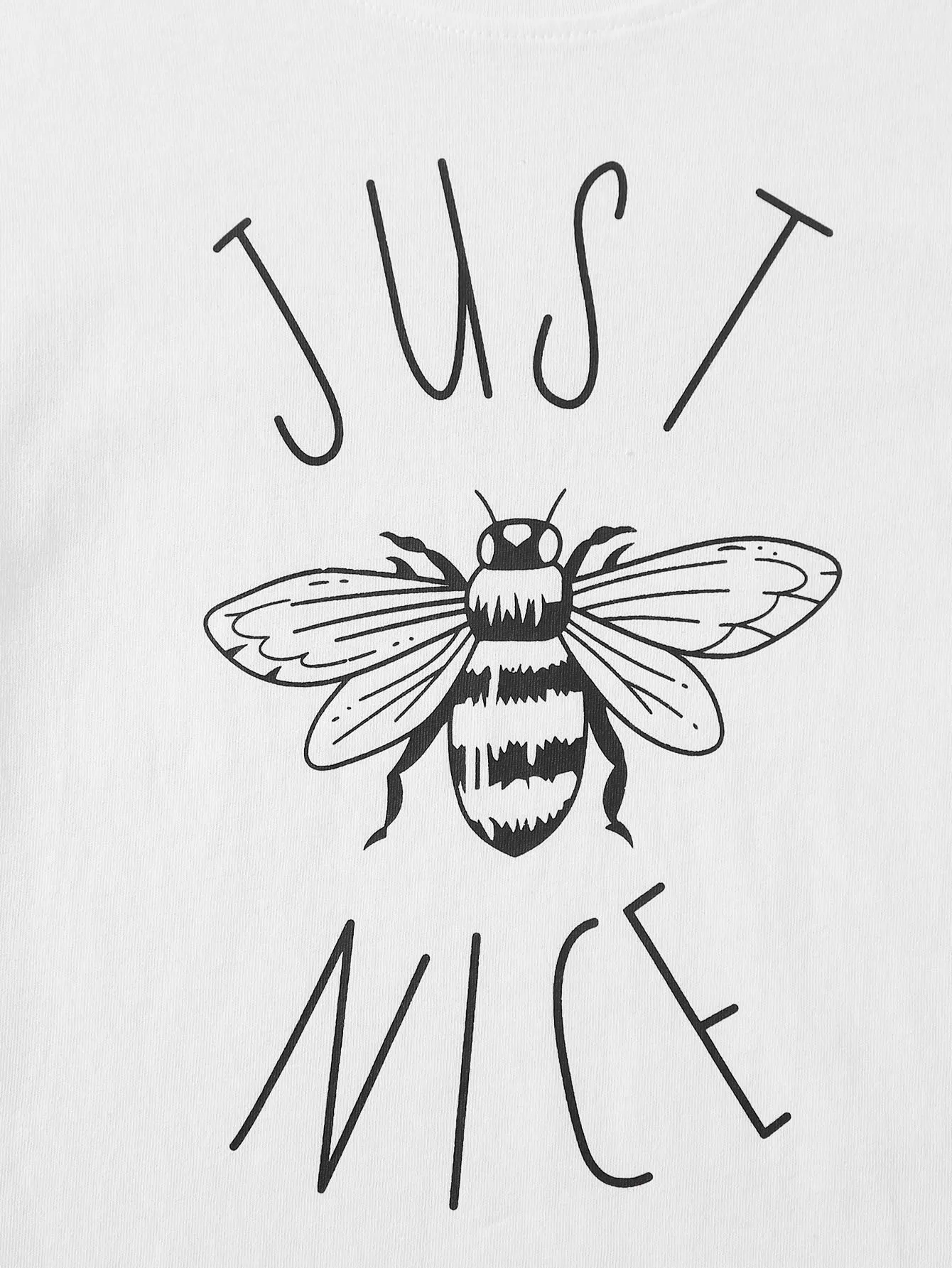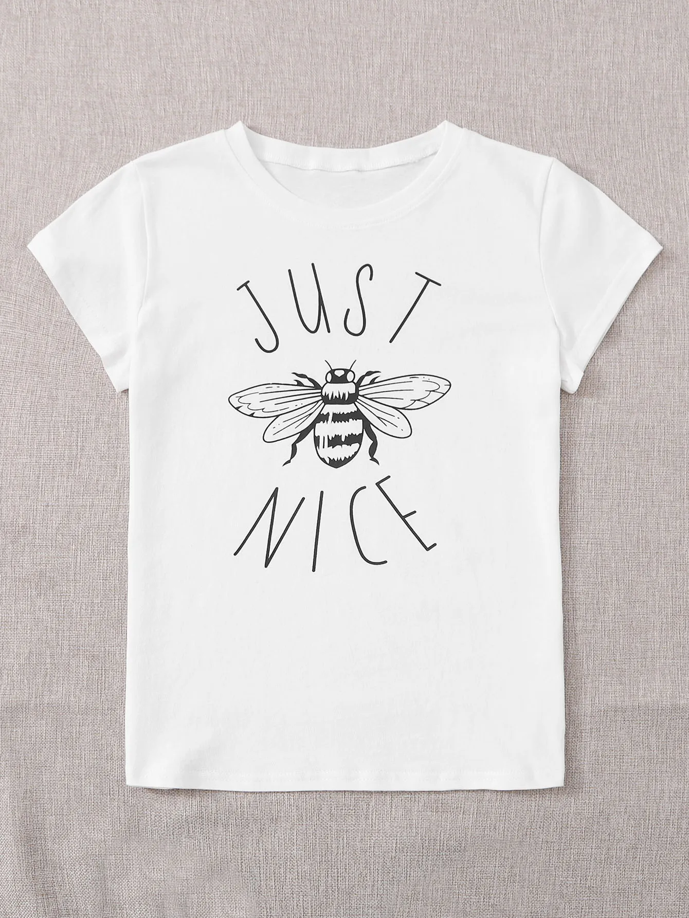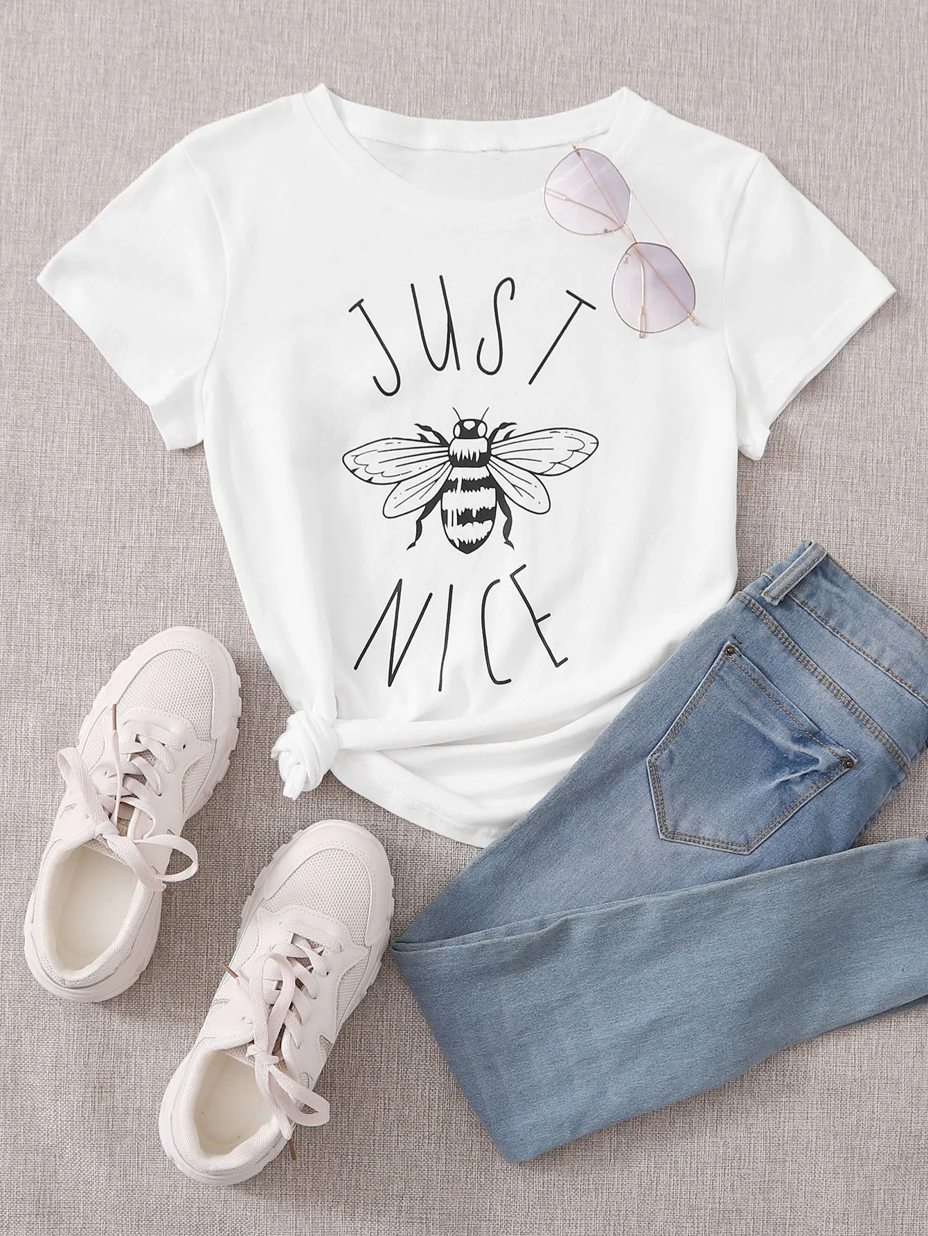 SMY Letter Printed JUST NICE Small Round Neck Simple Pattern Printed T-Shirt