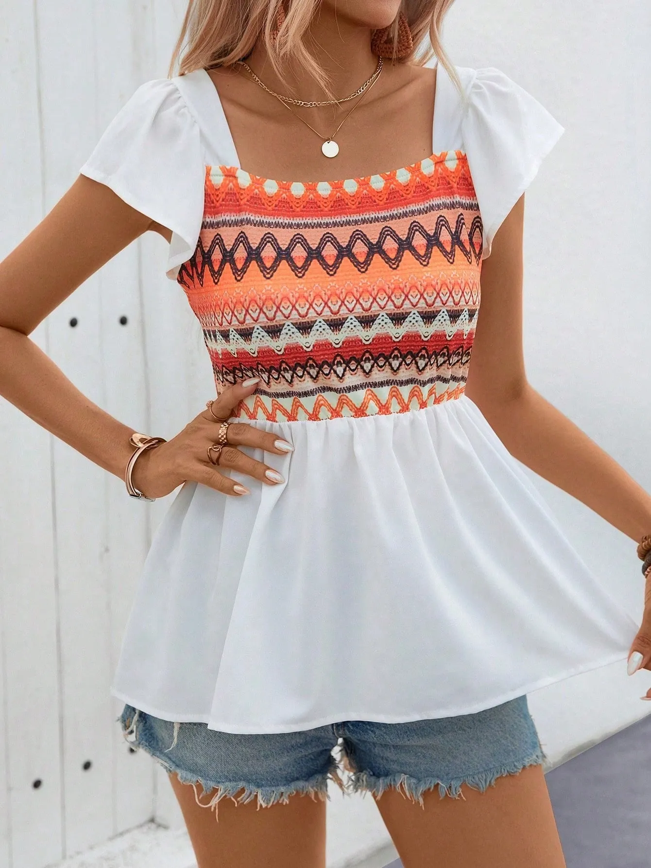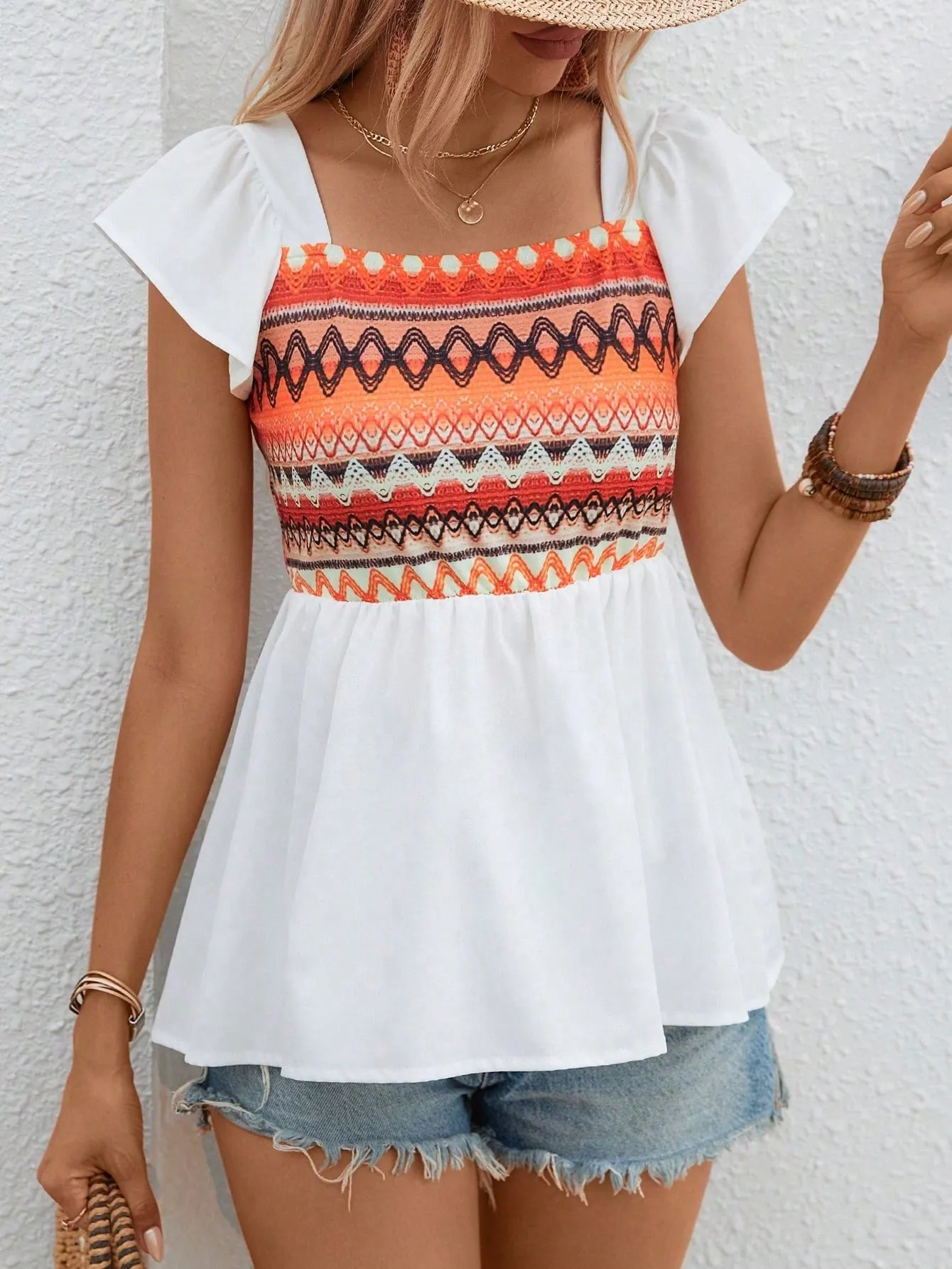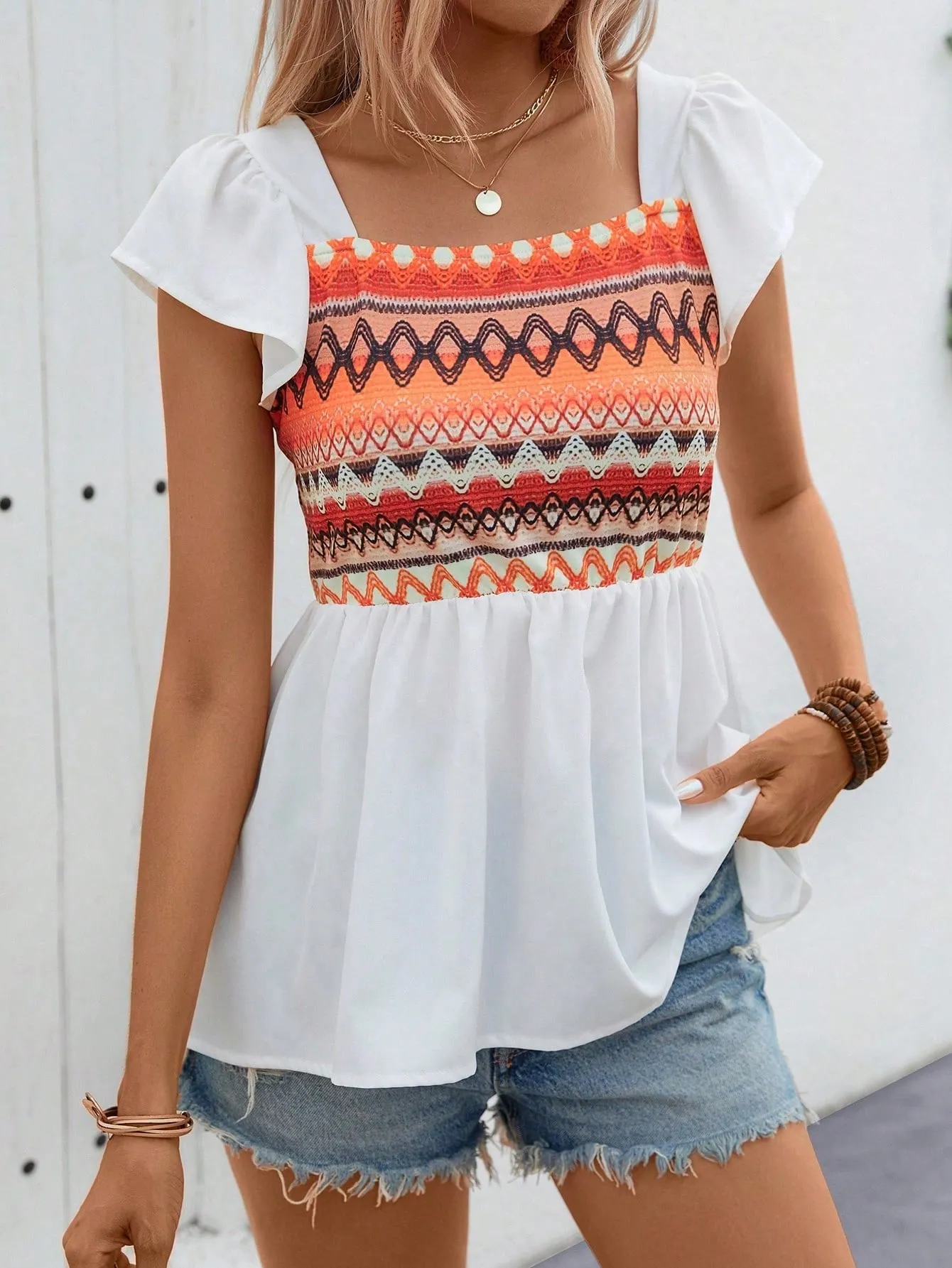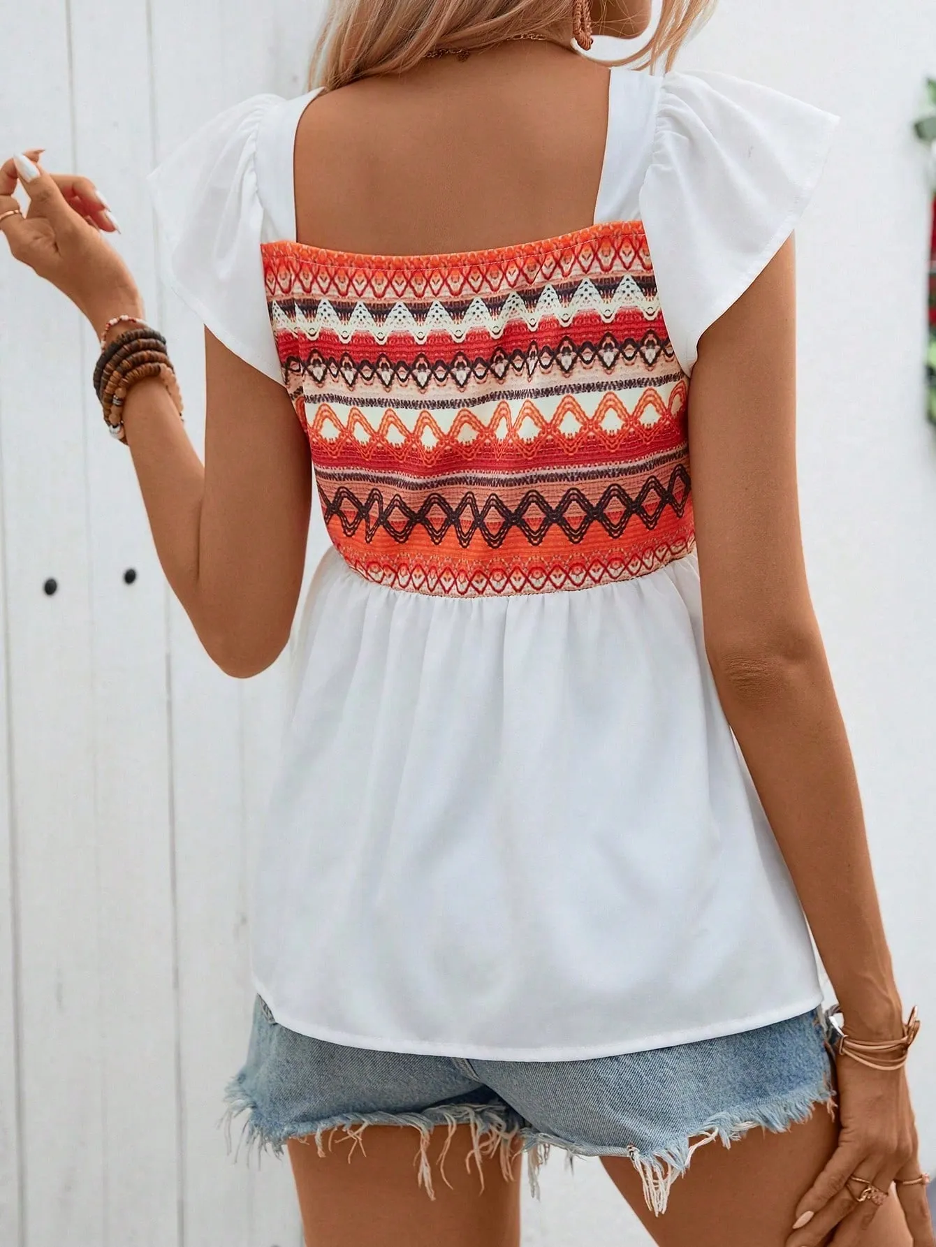 Be the first to review “SMY Romantic Trend Square Neck Women’s Patchwork Pattern Shirt” Cancel reply
