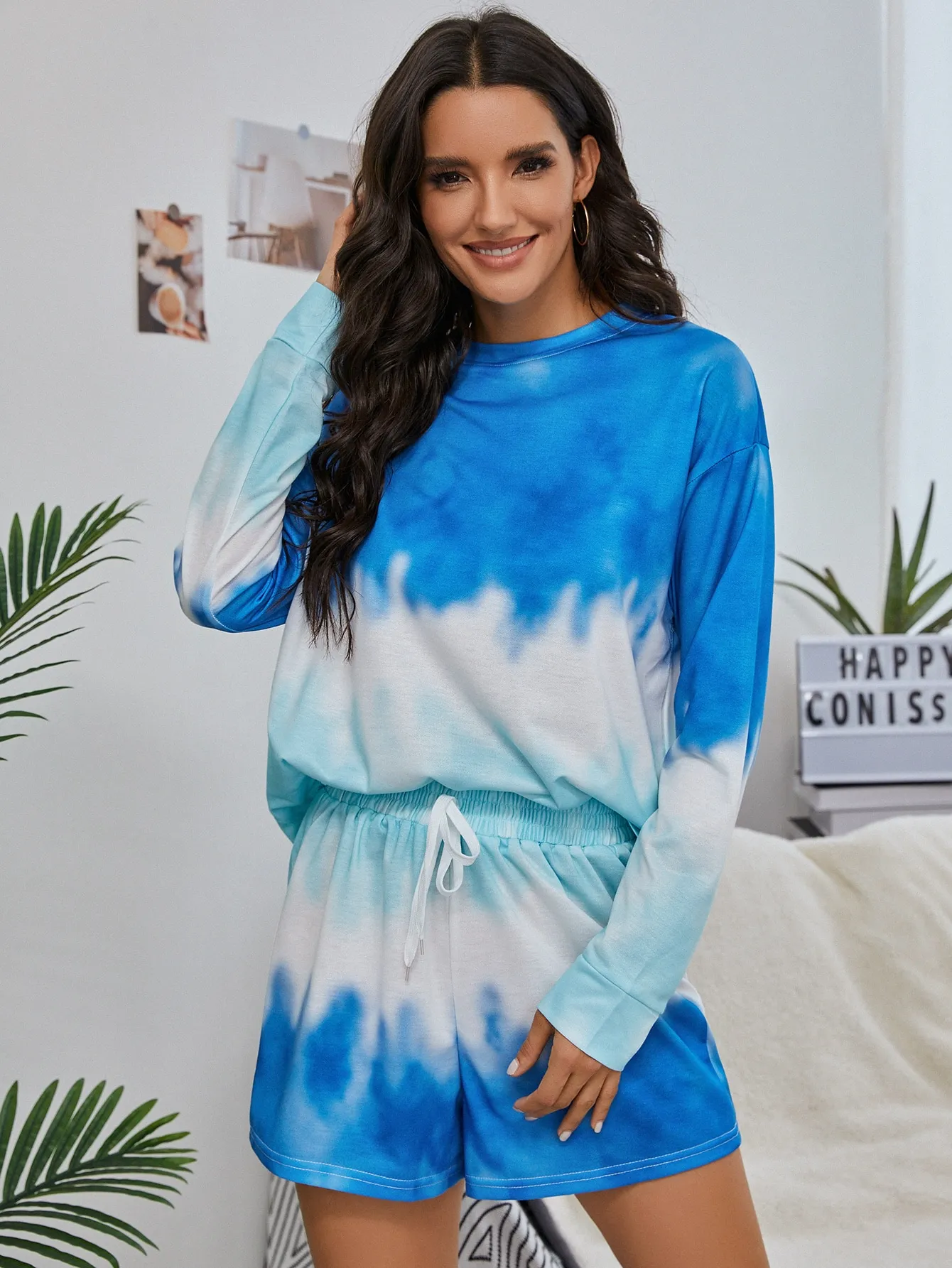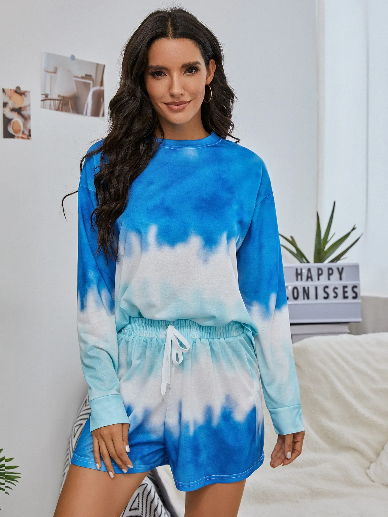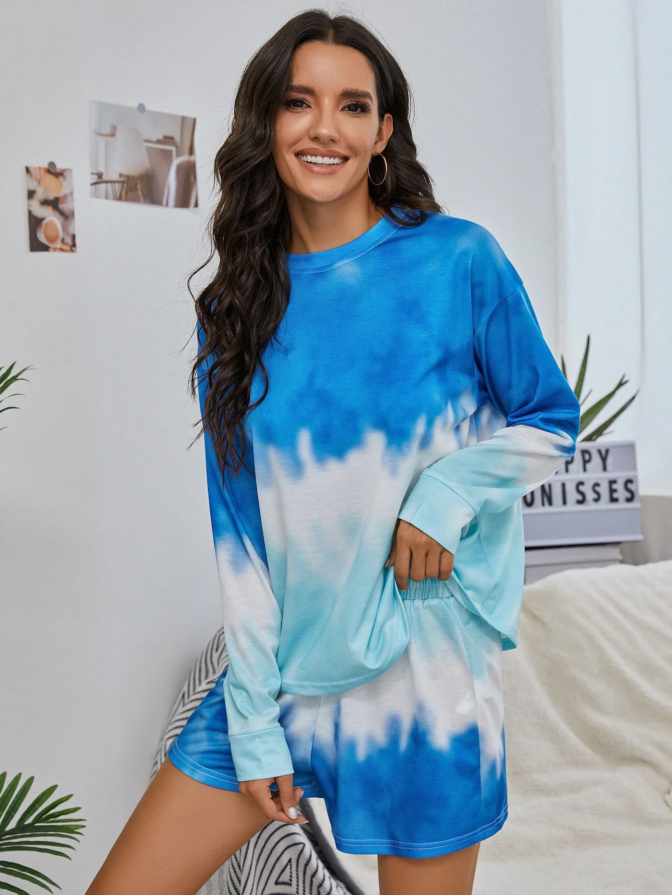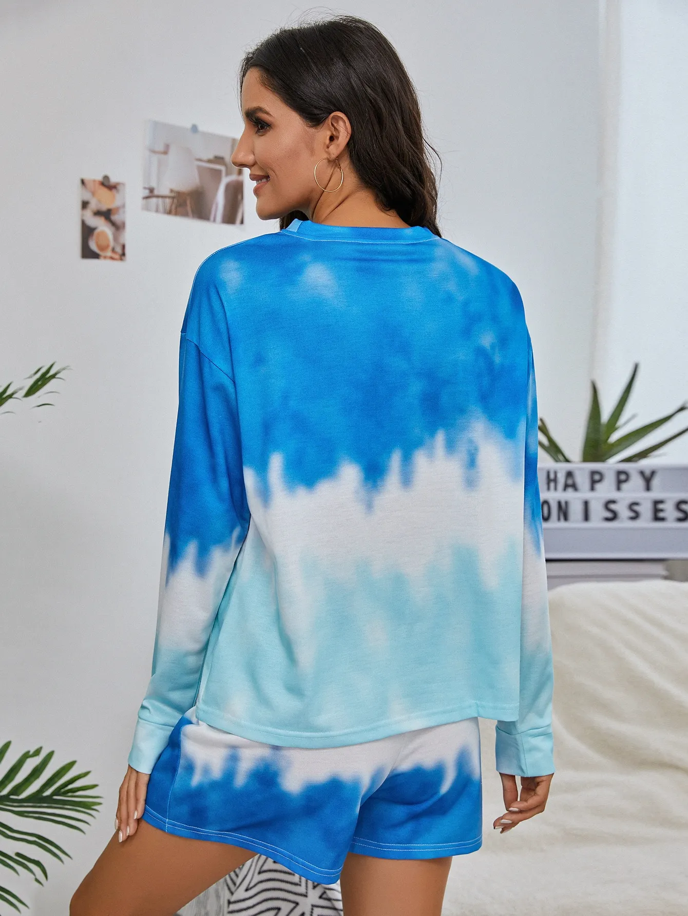SMY Letter Pattern Drop Shoulder Tee & Biker Shorts