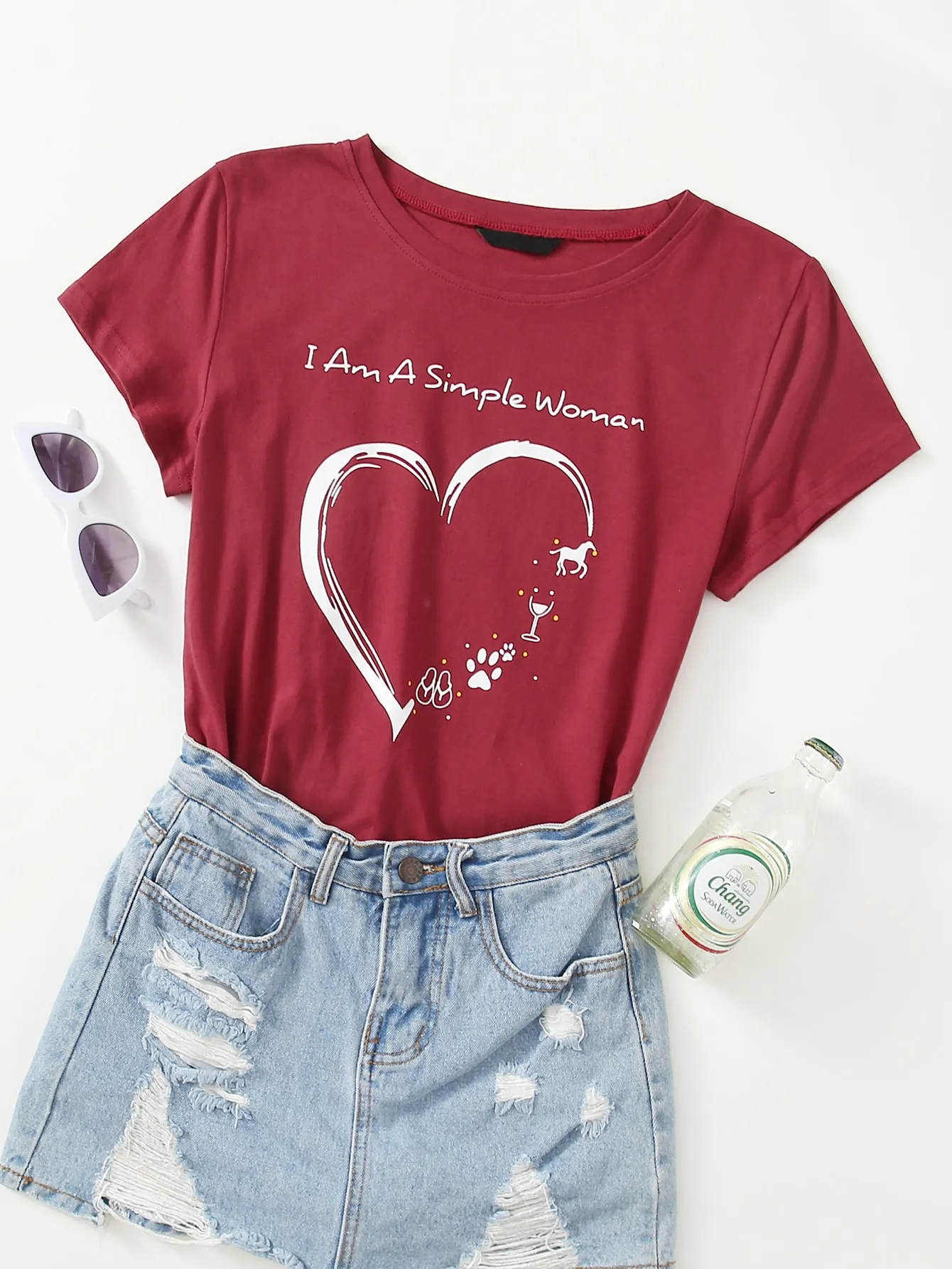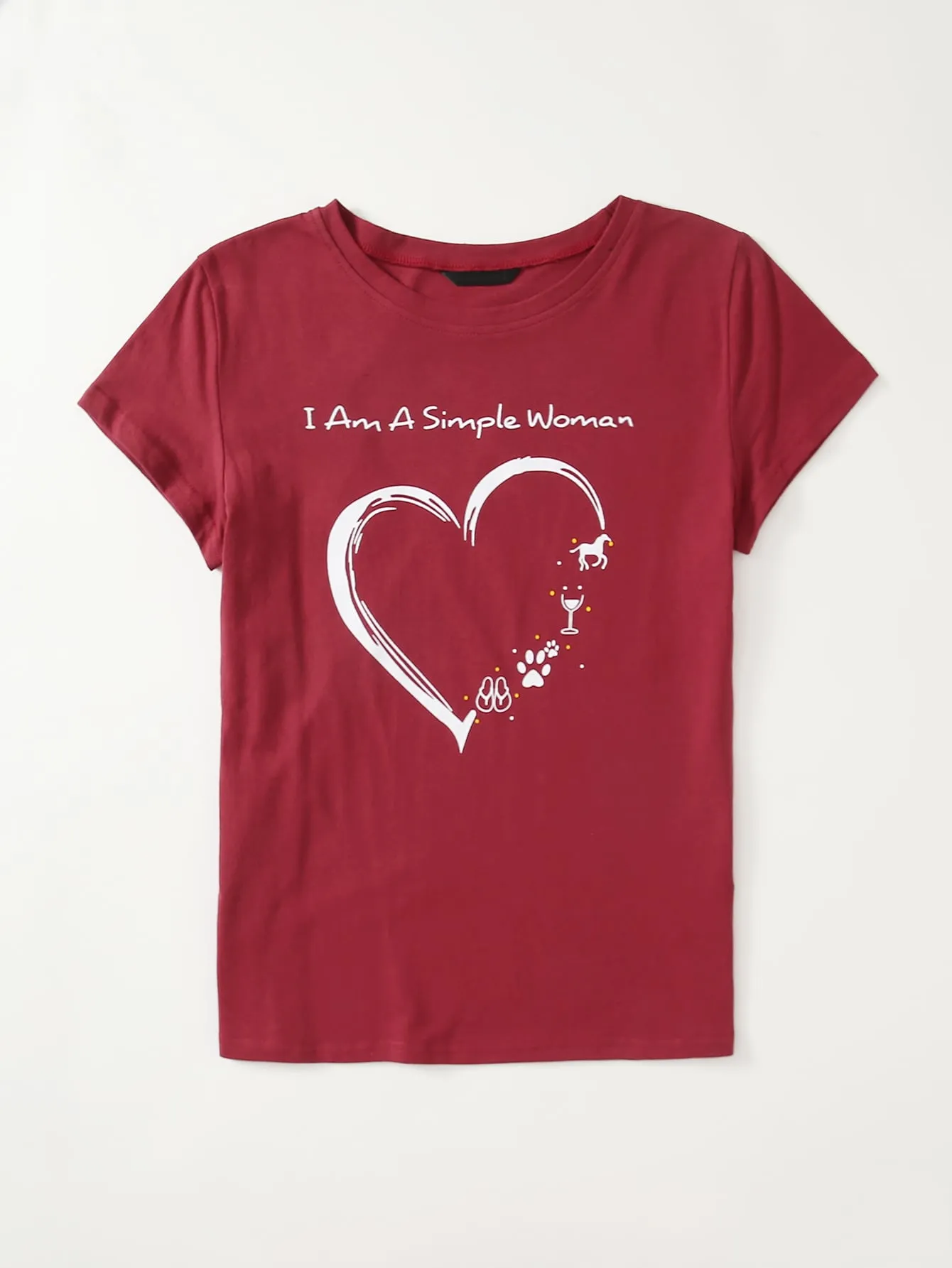SMY SIMPLE WOMEN Small Round Neck Simple Pattern Printed T-Shirt