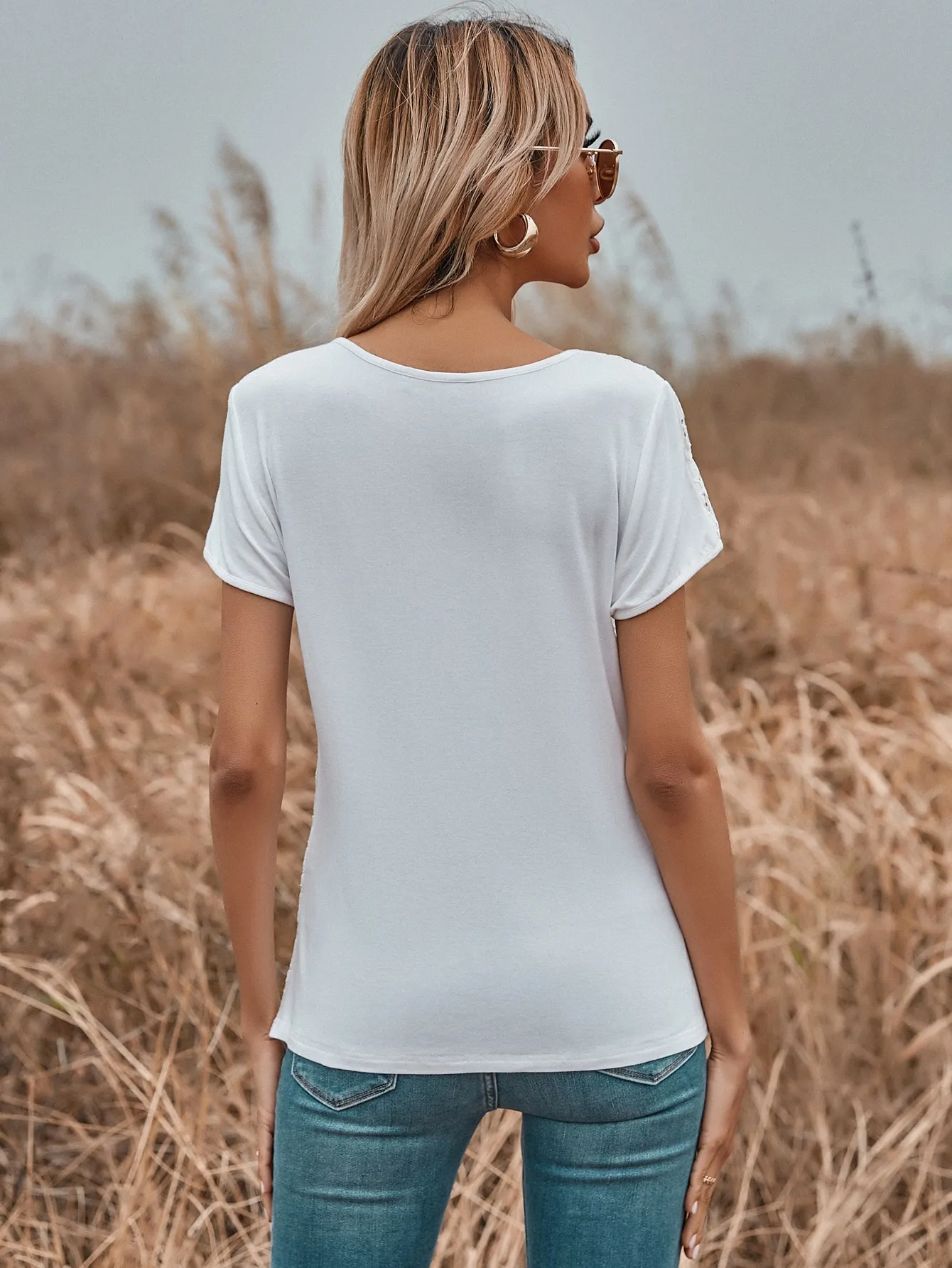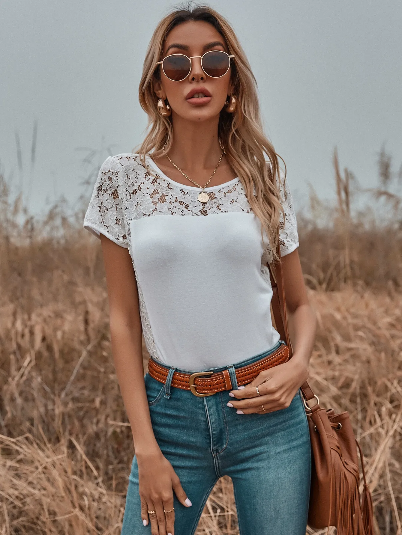 SMY Small Lace Stitching Round Neck Short Sleeved T-Shirt