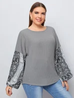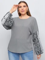 SMY Small Round Long Sleeves Neck Plus Size T-Shirt
