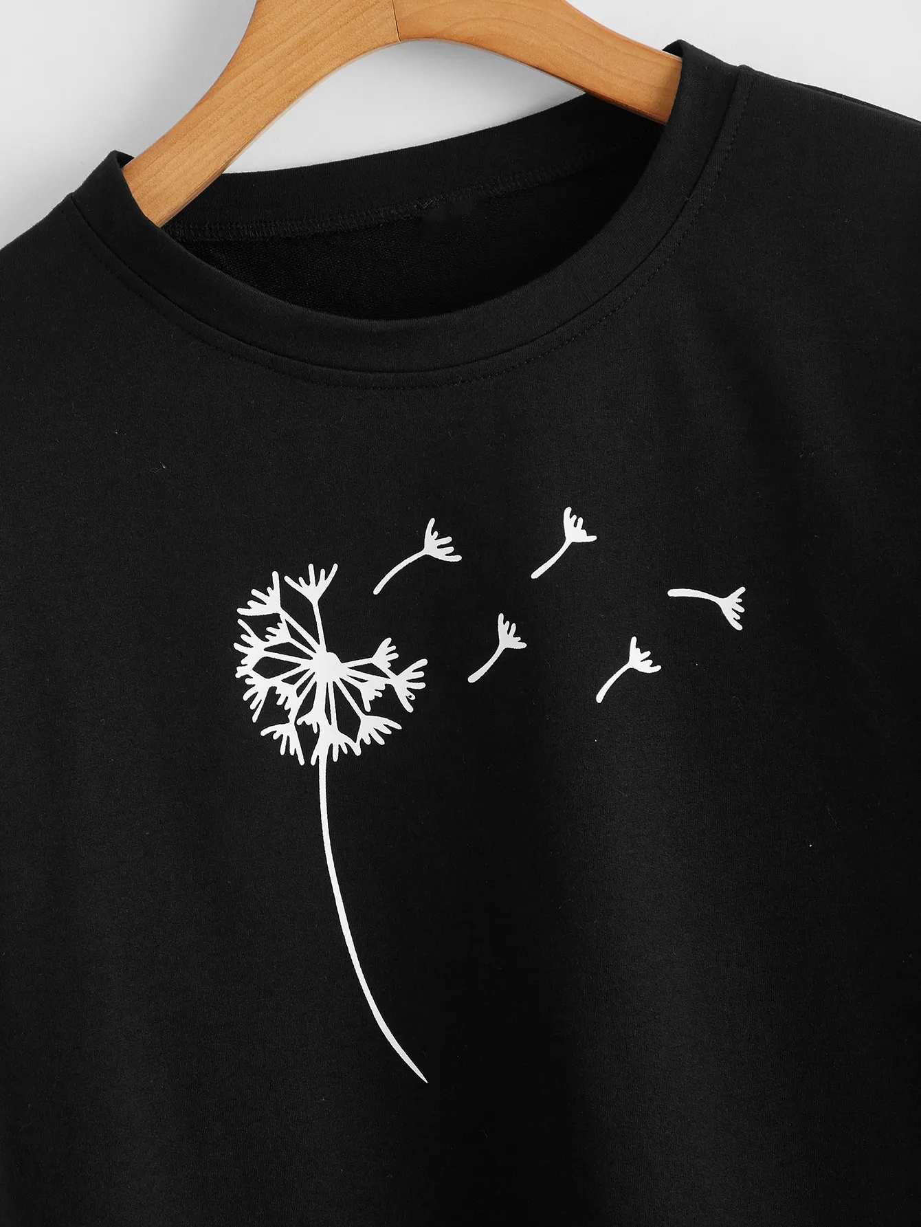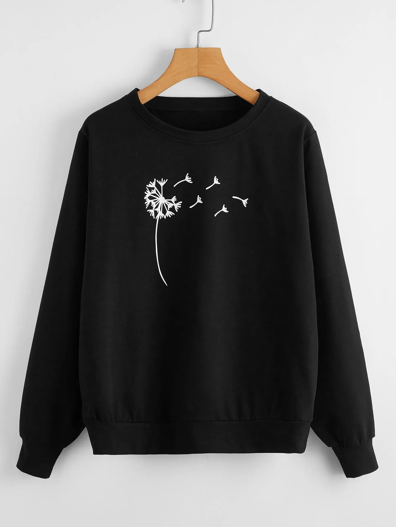 SMY Small Round Neck Regular Printed Dandelion pattern Hoodie