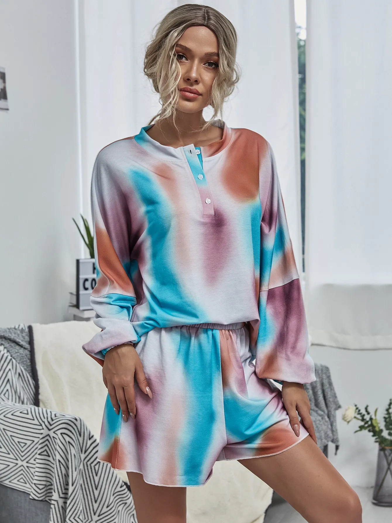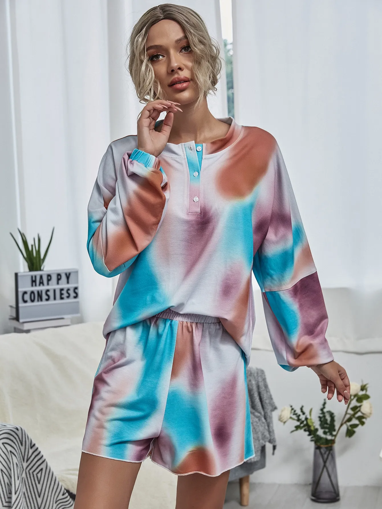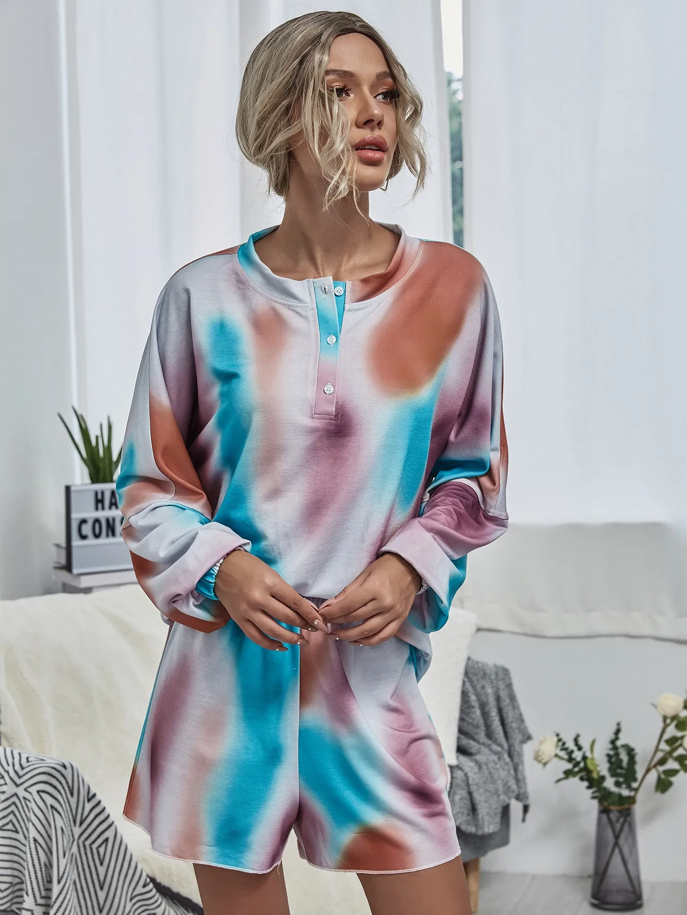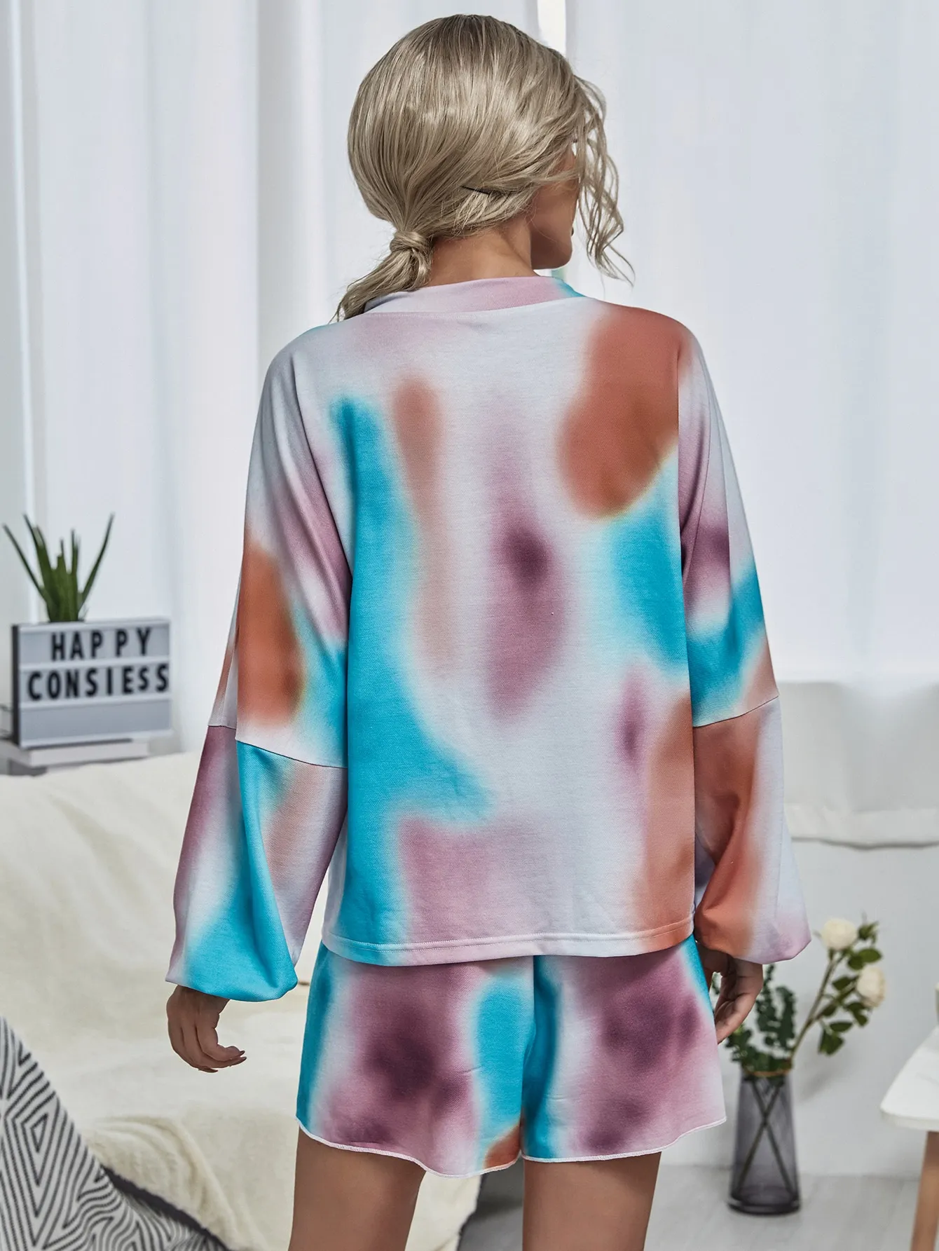 SMY 2pcs Women’s Solid Color Hollow V-Neck Short Sleeve Top And Shorts Summer Set