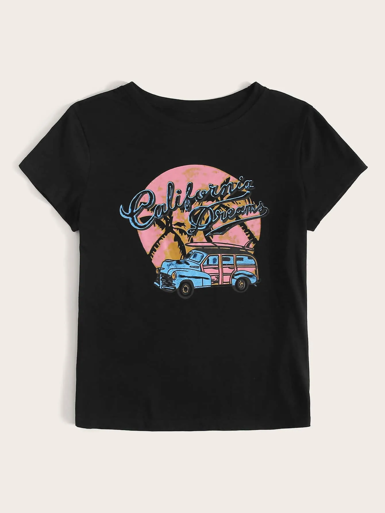 SMY Small Round Neck Simple Pattern Cartoon Car Pattern Plus Size T-Shirt