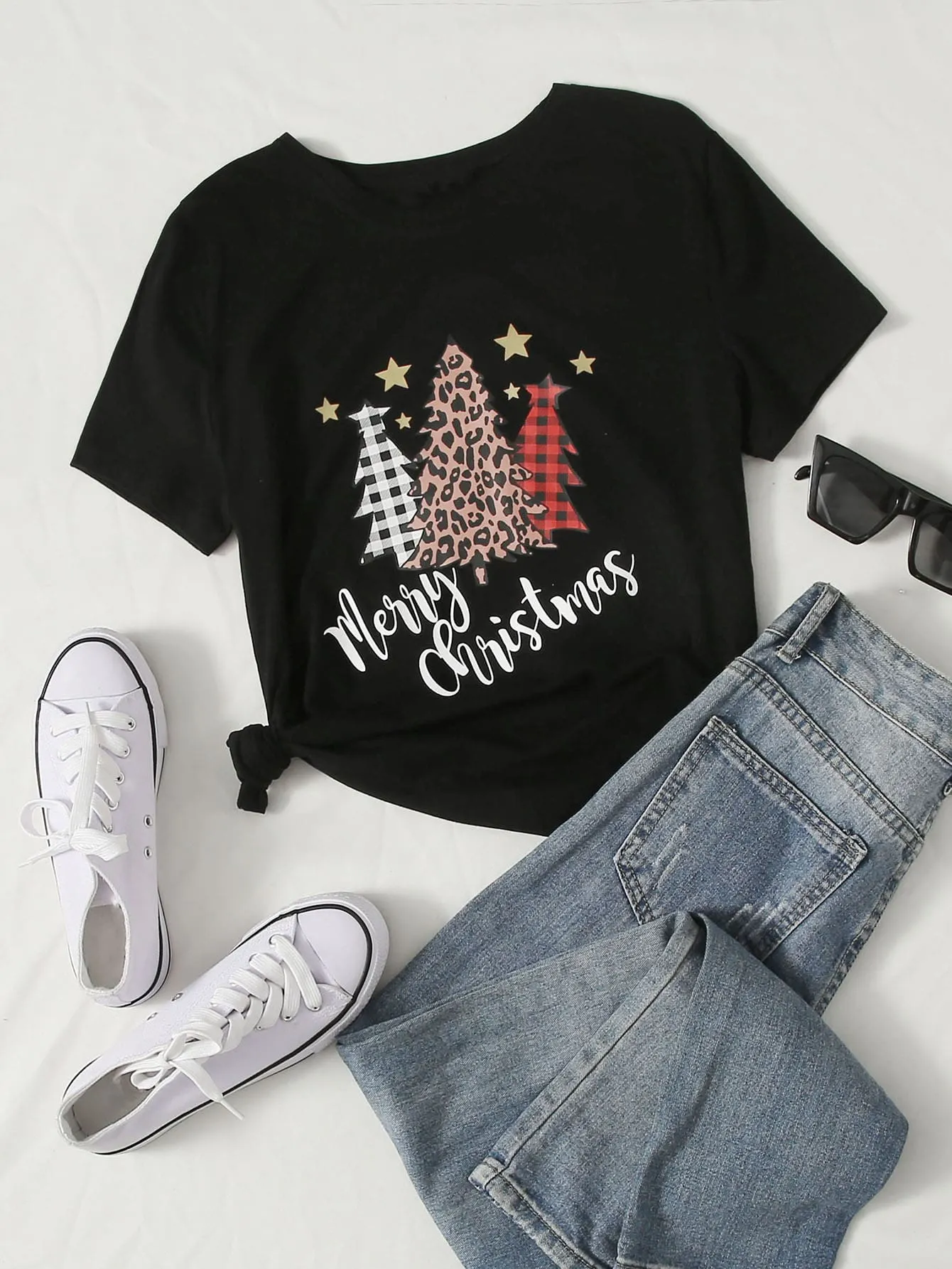 Be the first to review “SMY Small Round Neck Simple Pattern Christmas Tree Print Plus Size T-Shirt” Cancel reply