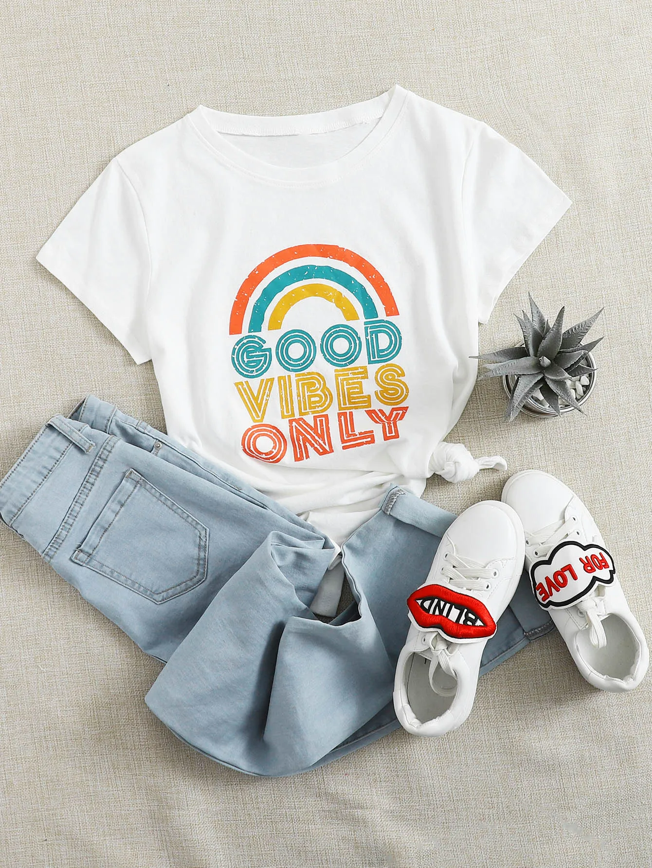 Be the first to review “SMY Small Round Neck Simple Pattern Good Vibes Only Letter Print Plus Size T-Shirt” Cancel reply