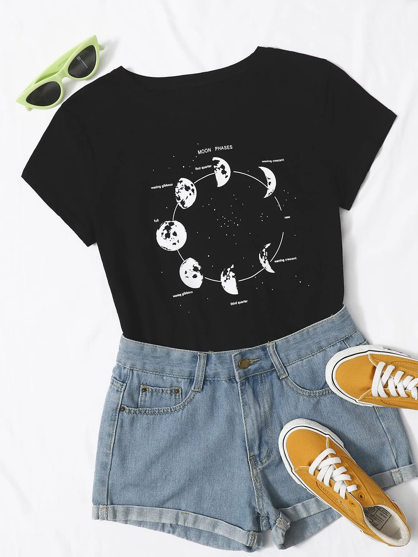 SMY Small Round Neck Simple Pattern Lunar Eclipse Process Plus Size T-Shirt