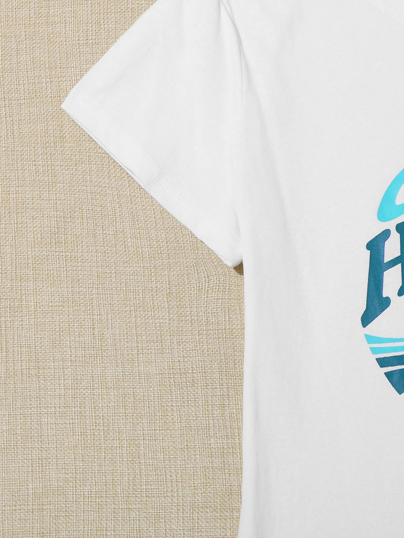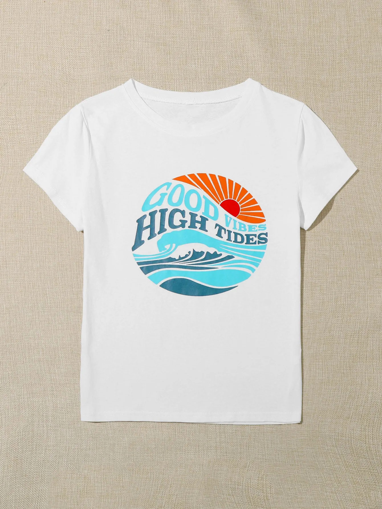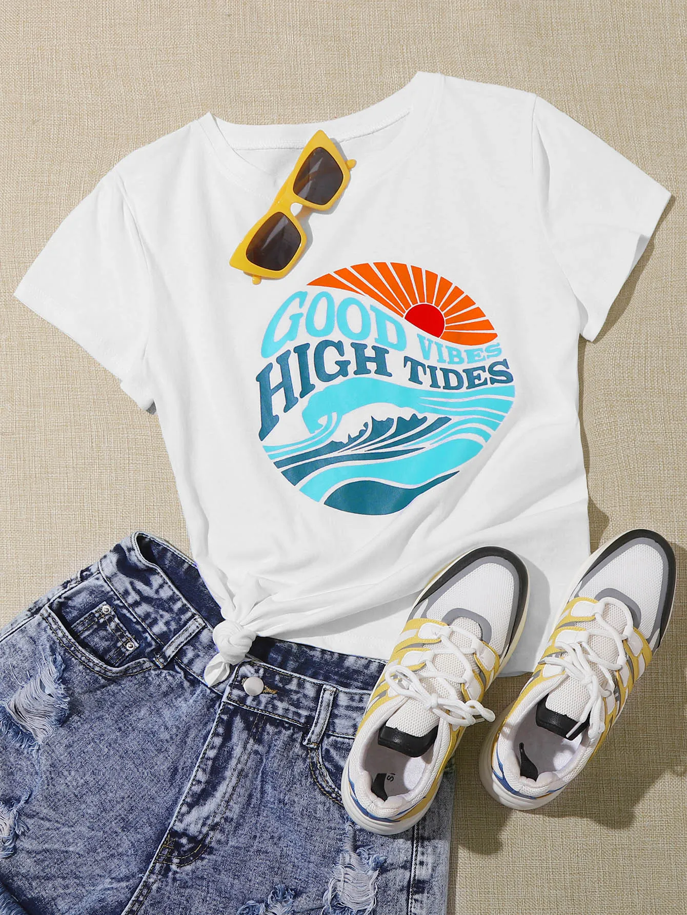 SMY Small Round Neck Simple Pattern Plus Size GOOD VIBES HIGH TIDES Letter Print T-Shirt