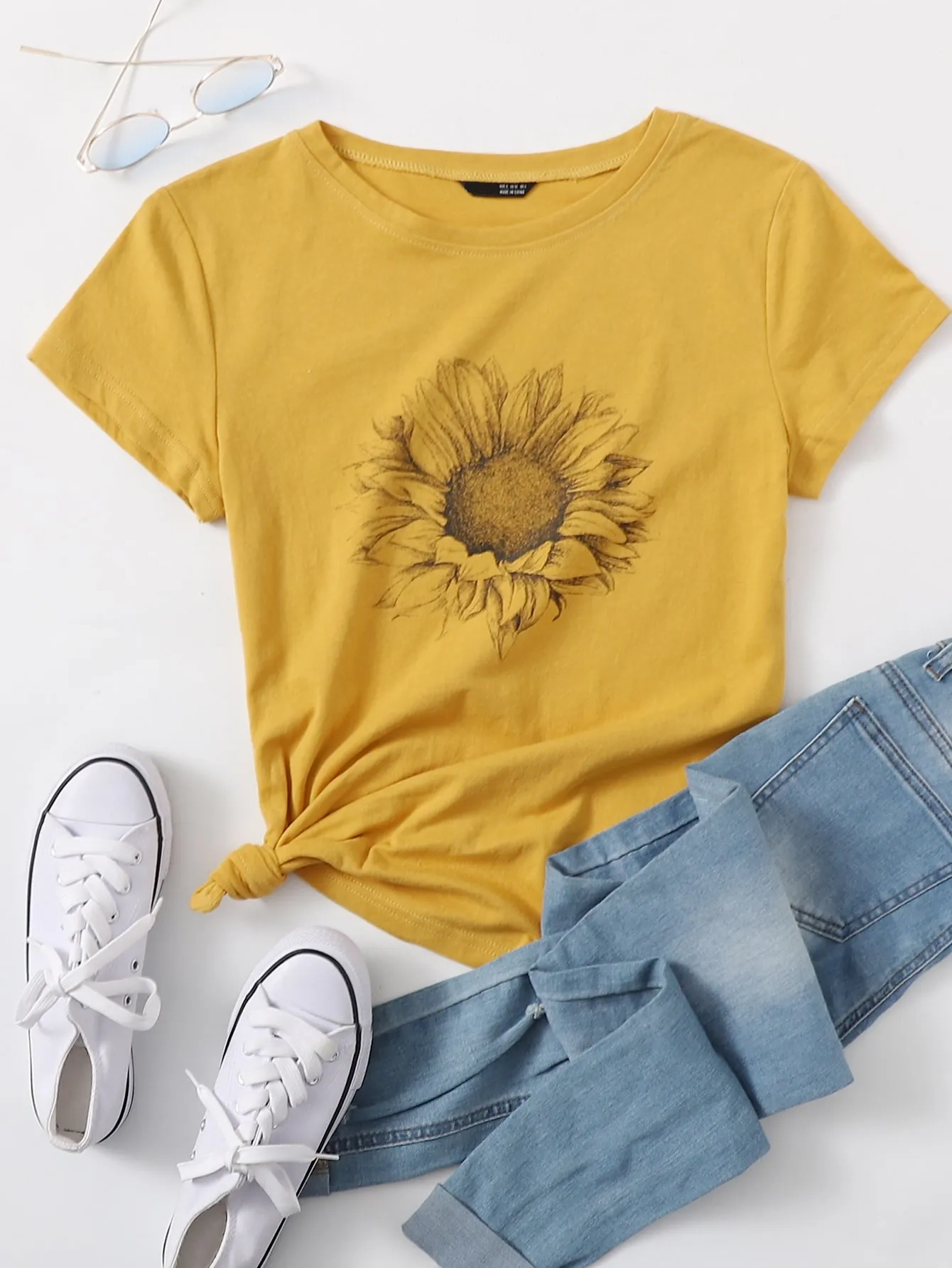 Be the first to review “SMY Small Round Neck Simple Pattern Sunflower Print Plus Size T-Shirt” Cancel reply