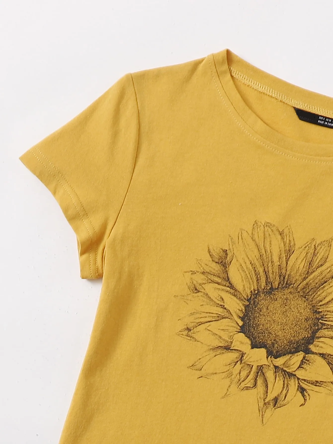 SMY Small Round Neck Simple Pattern Sunflower Print Plus Size T-Shirt