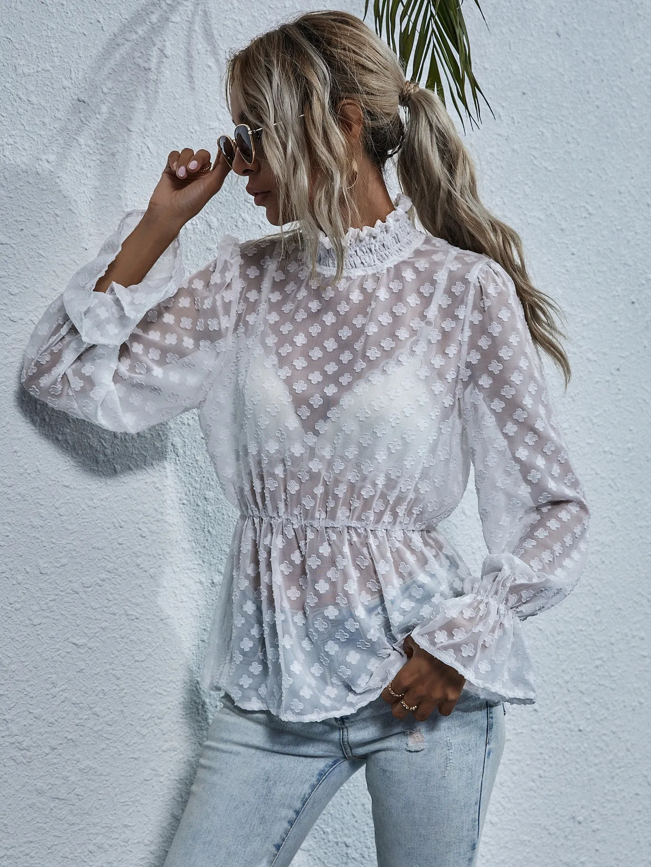 SMY Clasi Women’s Elegant Fashionable Hollow Lace Patchwork Shirt