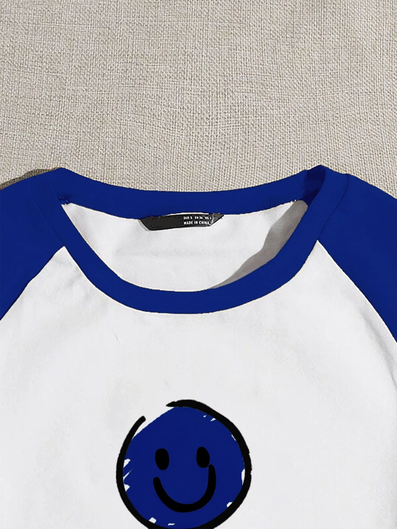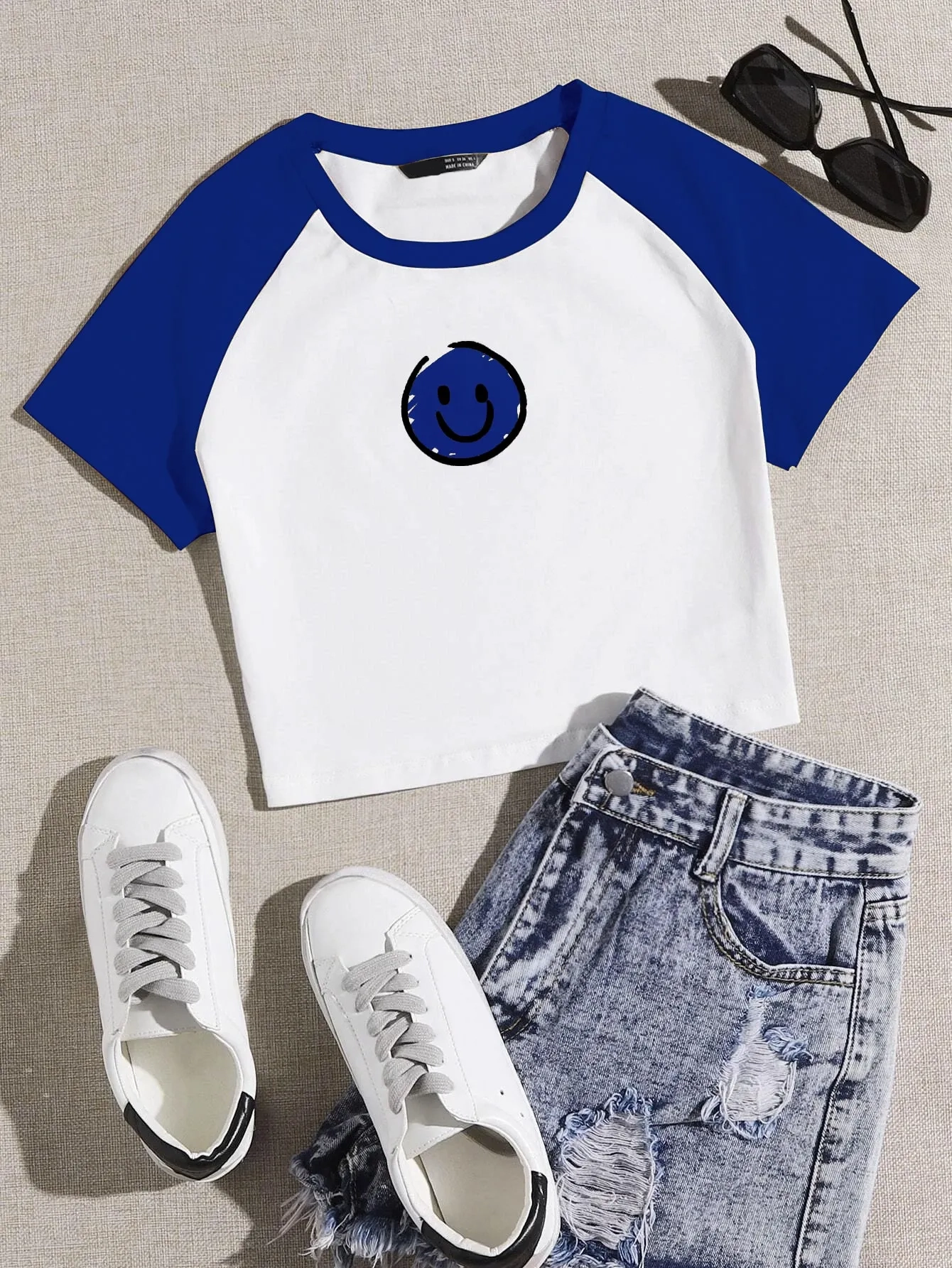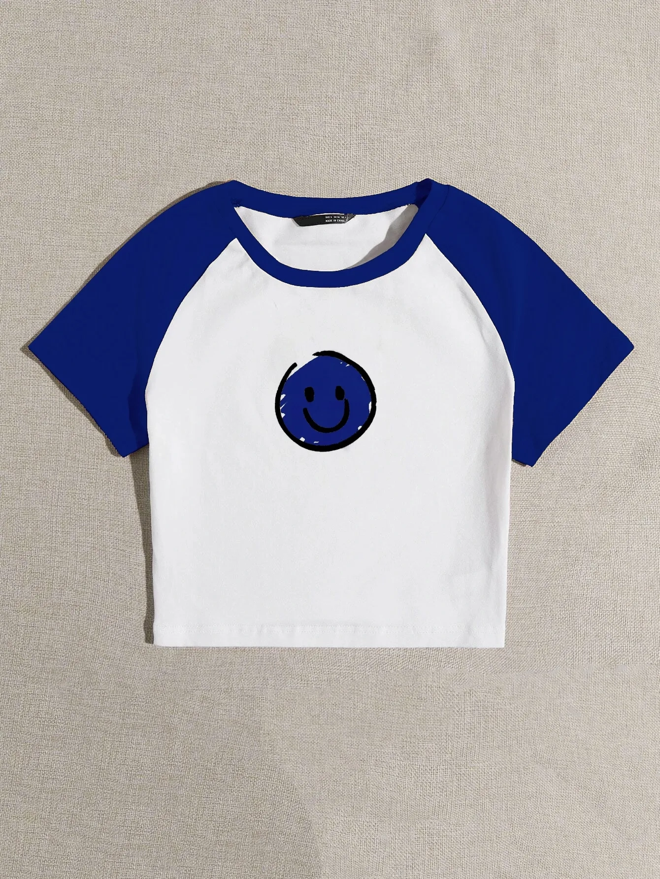 SMY Smiling Face Pattern Casual Round Neck Short Sleeved T-Shirt