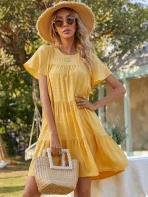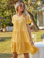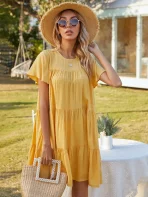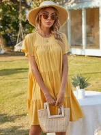 SMY Solid Color Casual Round Neck Short Sleeved Dress