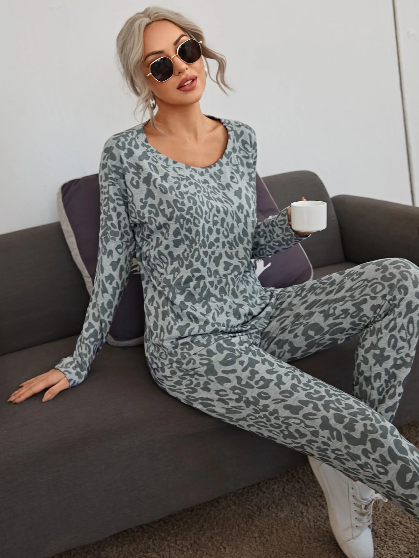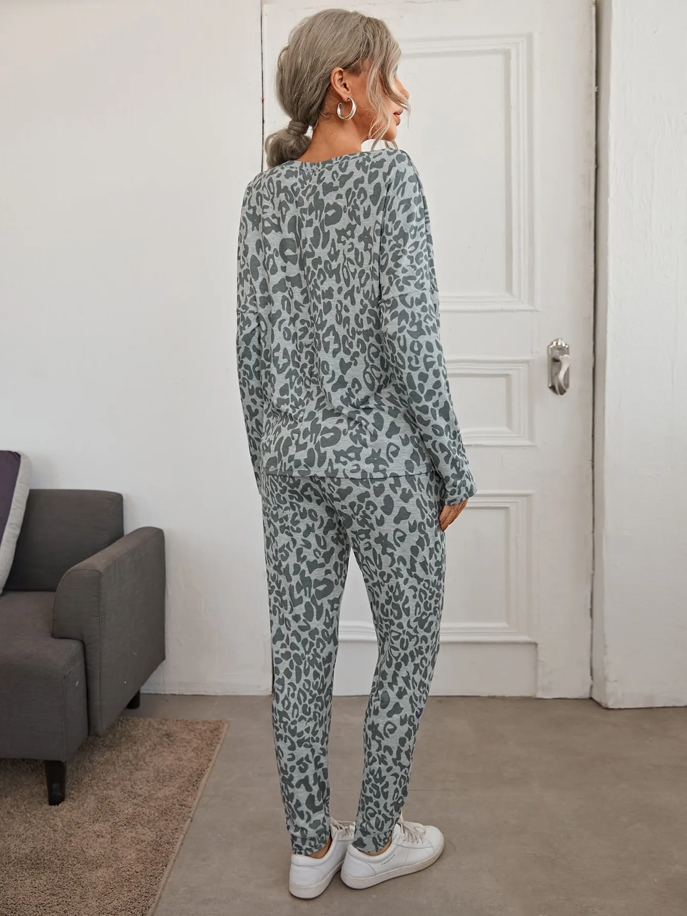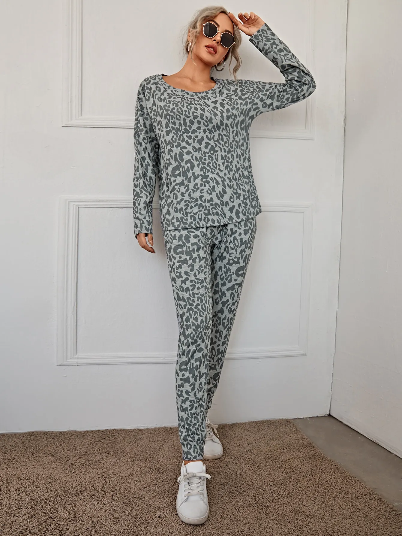 SMY Two Piece Set Of Casual Decorative Pattern Round Neck Long Pants