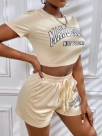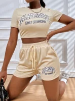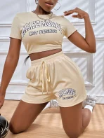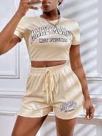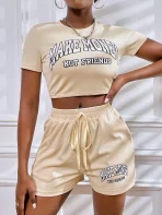 SMY Two Piece Set Of Casual Round Neck Shorts With Letter Print