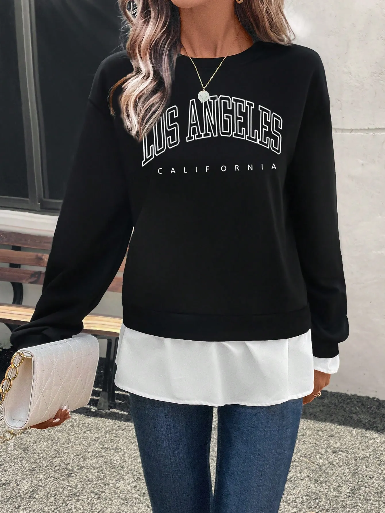 SMY Women’s Fashion Casual Black & White Contrast Color Letter Print Sweatshirt