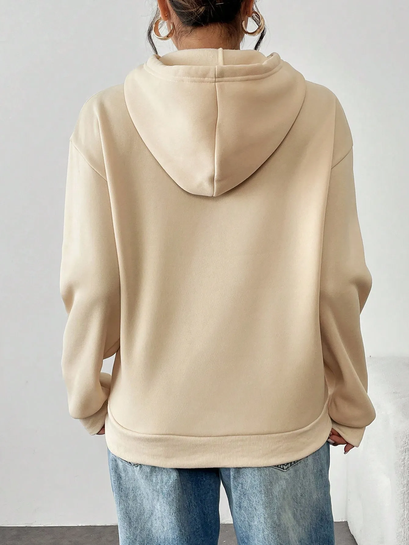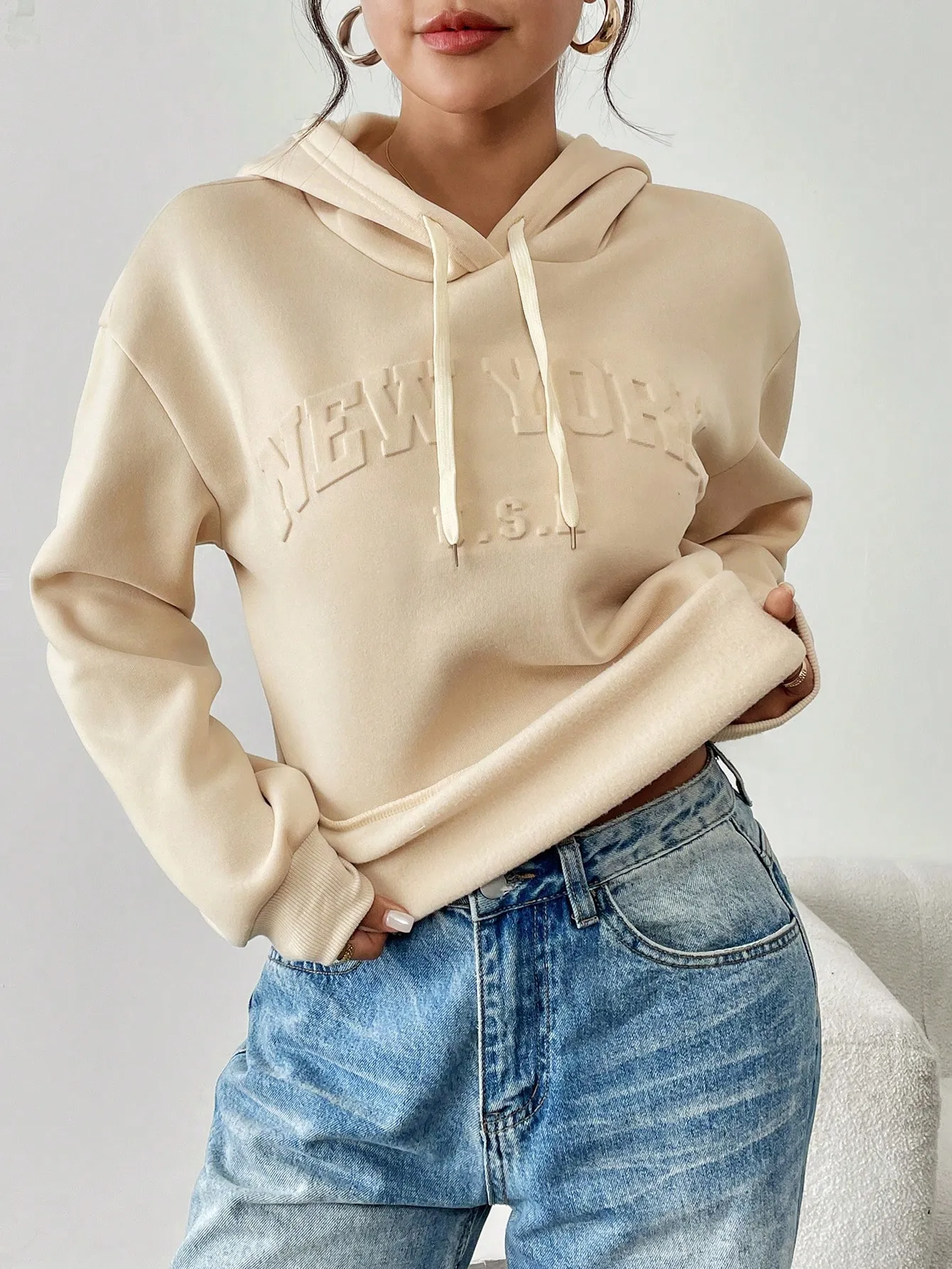 SMY Women’s Fashion Hooded Mock Neck Letter Embossed Casual Sweatshirt