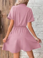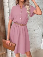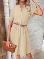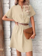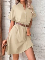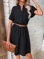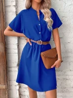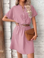 Be the first to review “SMY Solid Half Button Shirt Dress Without Belt” Cancel reply