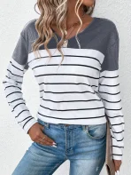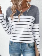 SMY Women’s Casual Knitted Contrast Lace Sweatshirt