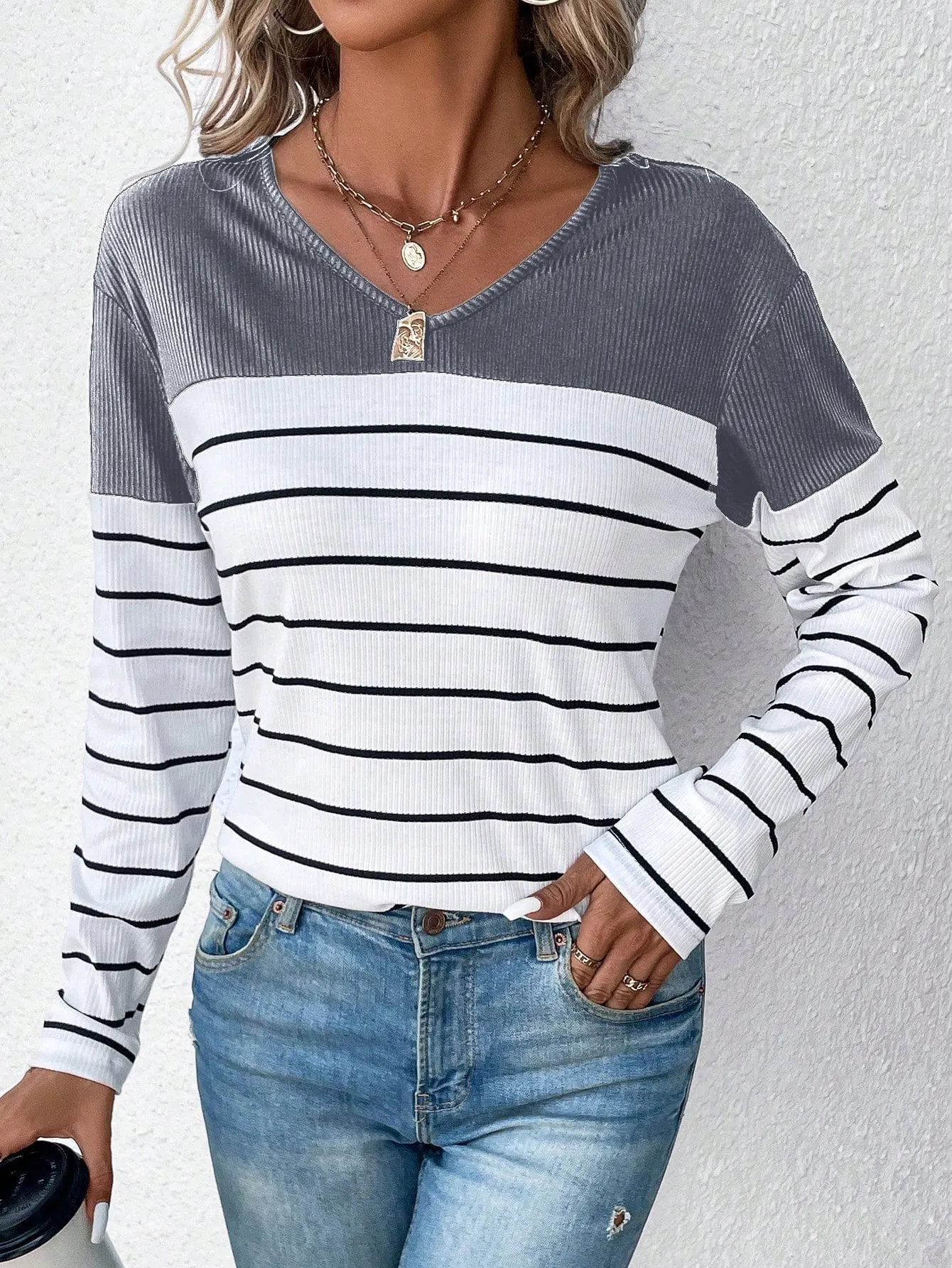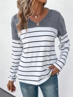 SMY Women’s Casual Color Block Splice 2 In 1 Long Sleeve Sweatshirt