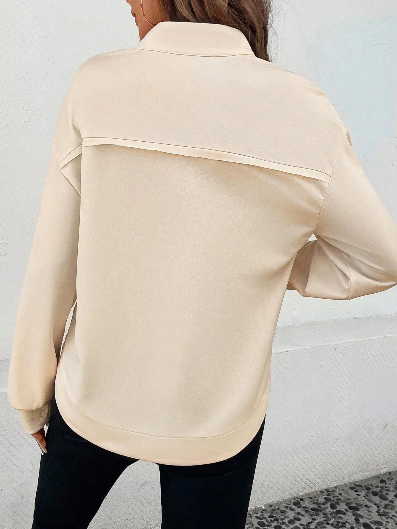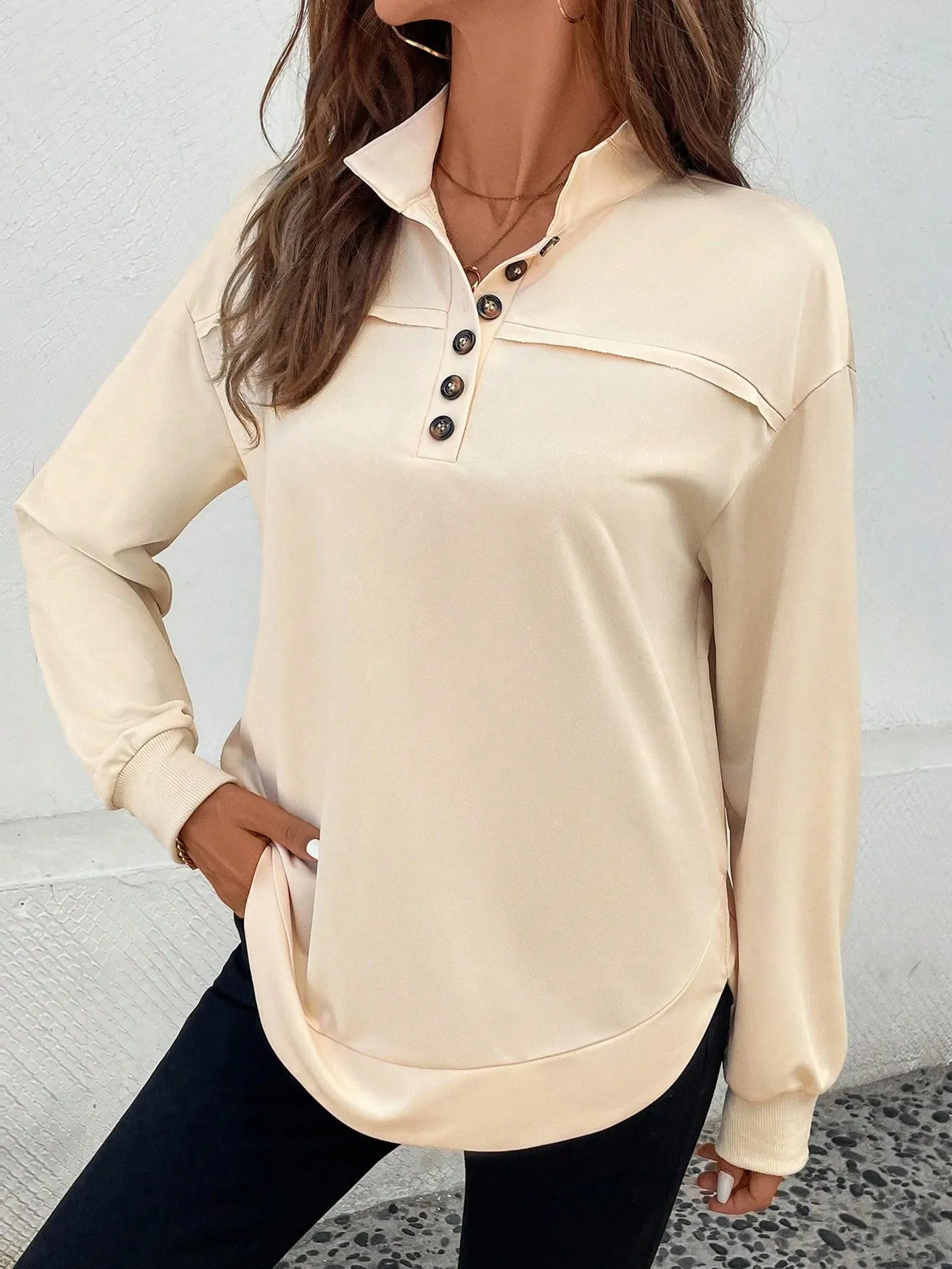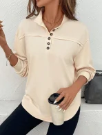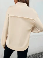 SMY Women Casual Solid Half-Zip Pullover Sweatshirt
