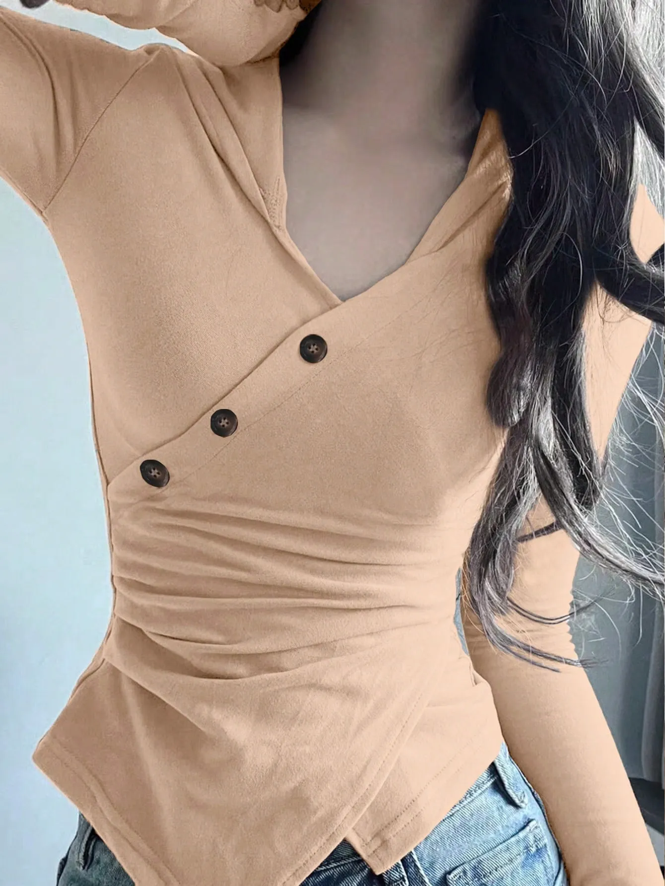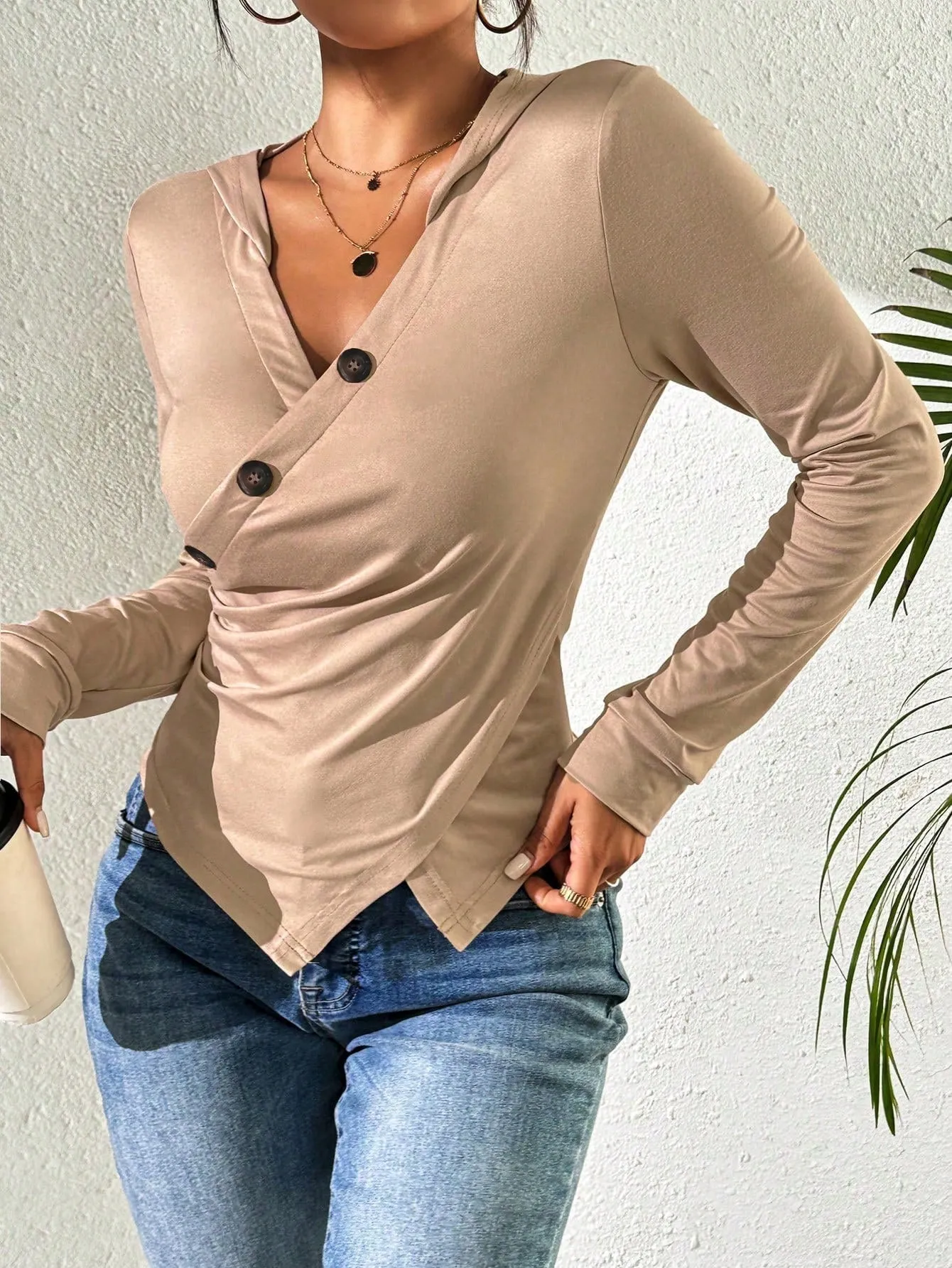 SMY Women’s Asymmetrical Crossed Ruched Hooded Sweatshirt With Cinched Waist