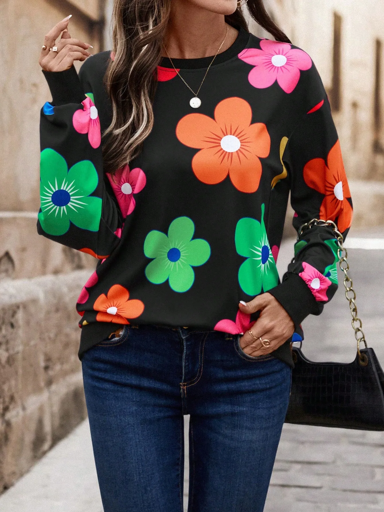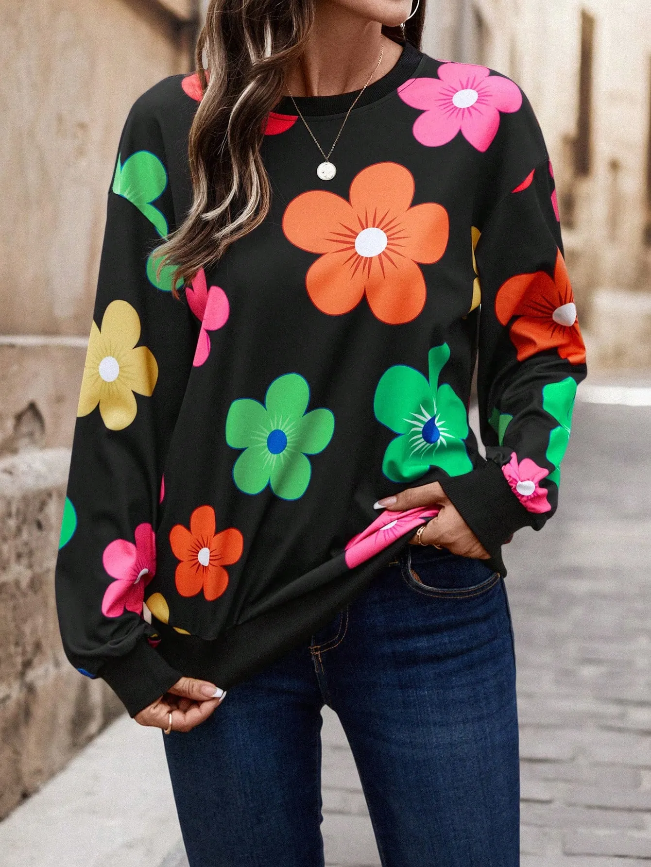 SMY Women’s Casual Vivid Floral Print Pullover Sweatshirt