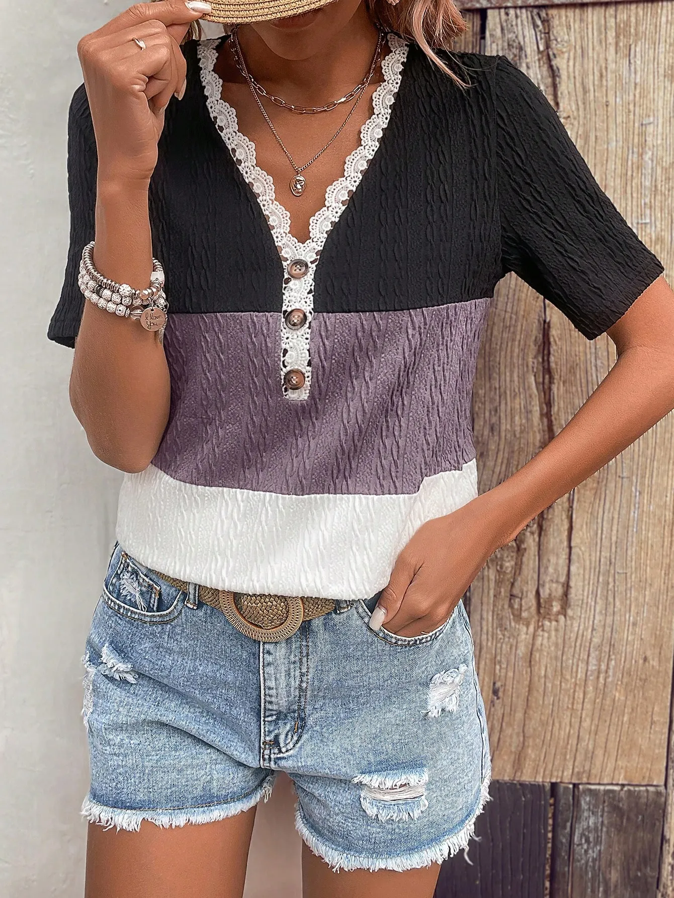 Be the first to review “SMY Women’s Colorblocked Lace Trim Tee” Cancel reply